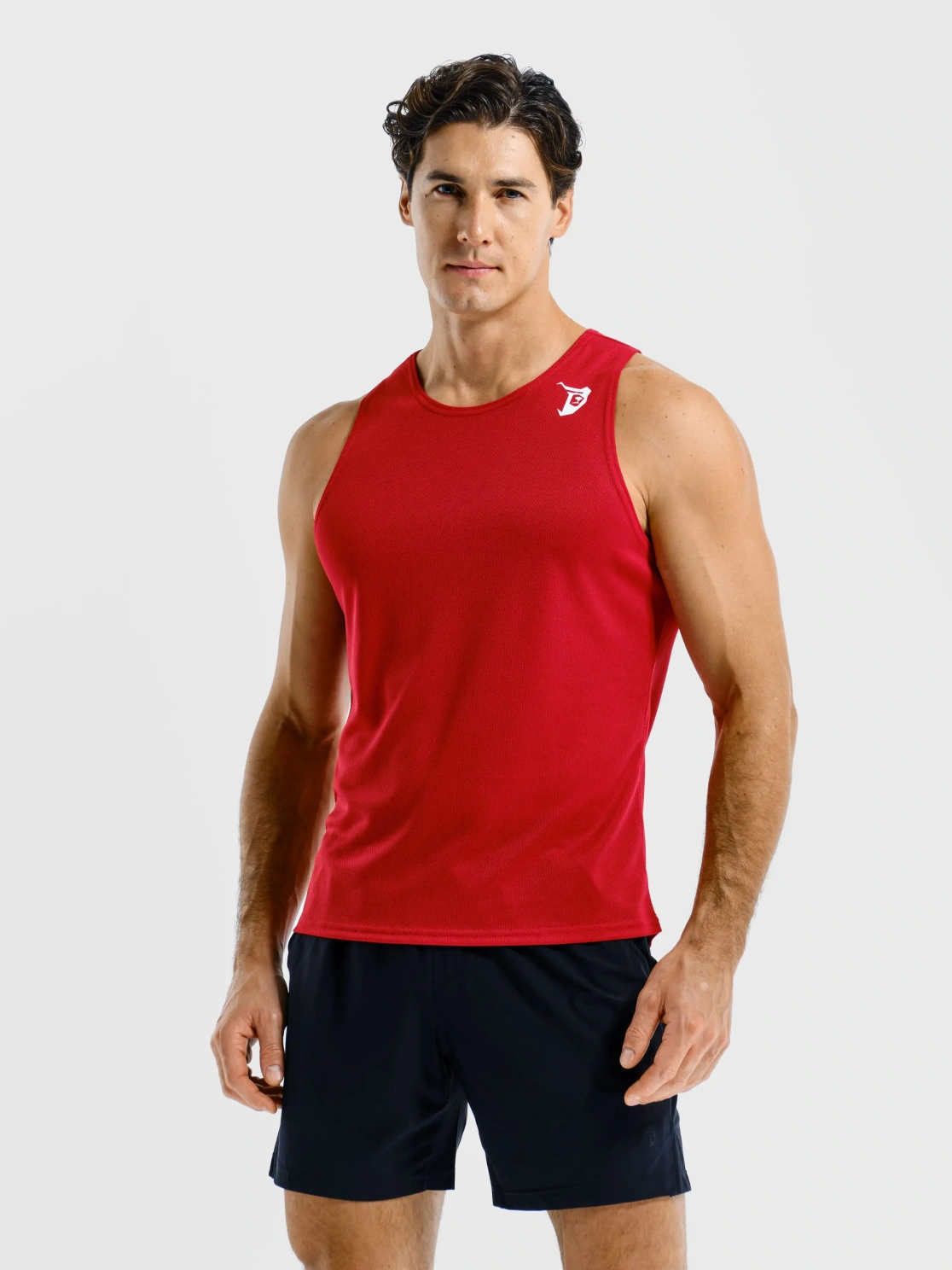Мужская майка с перфорацией сочетается с любыми спортивными аутфитами для тренировок в спортзале. Для поклонников ярких цветов предоставляется на выбор красный цвет. На груди майки логотип медведя белого цвета.
