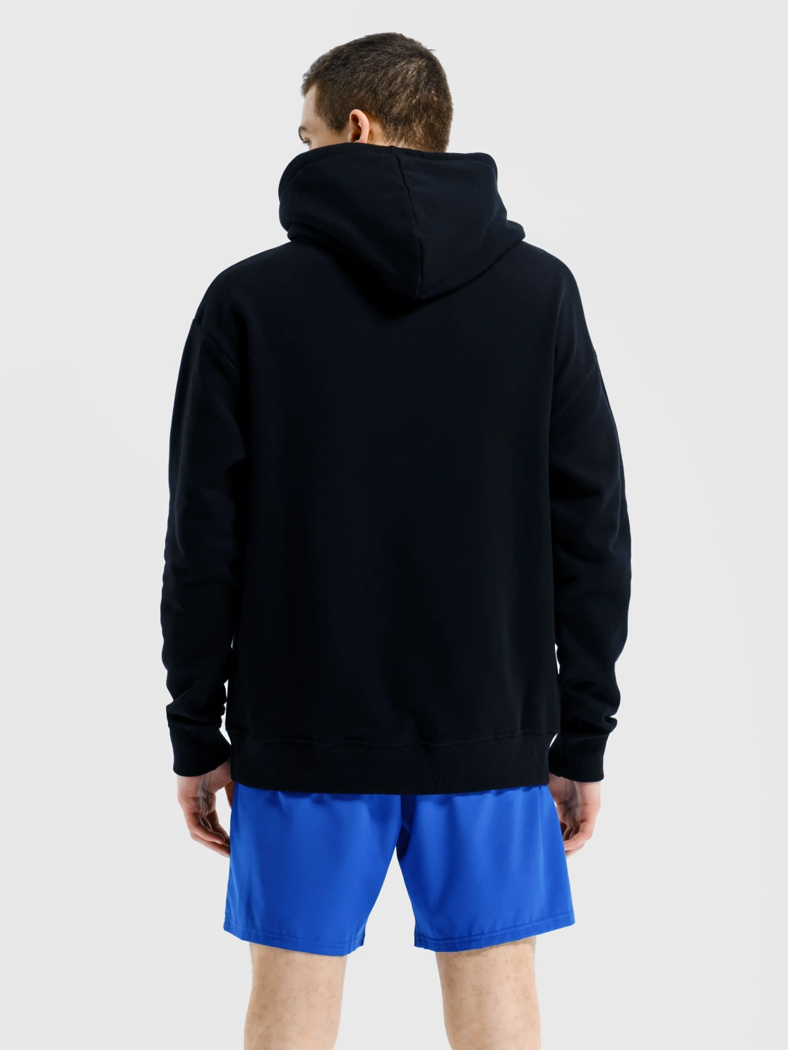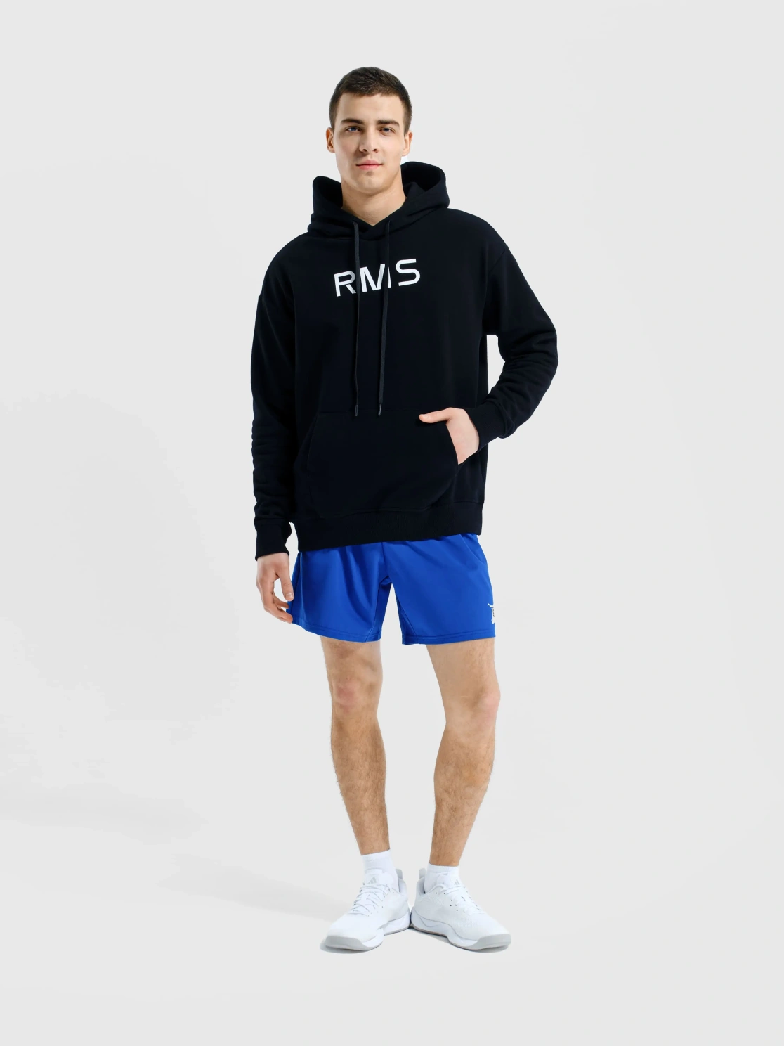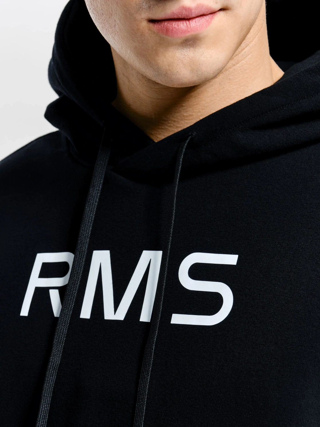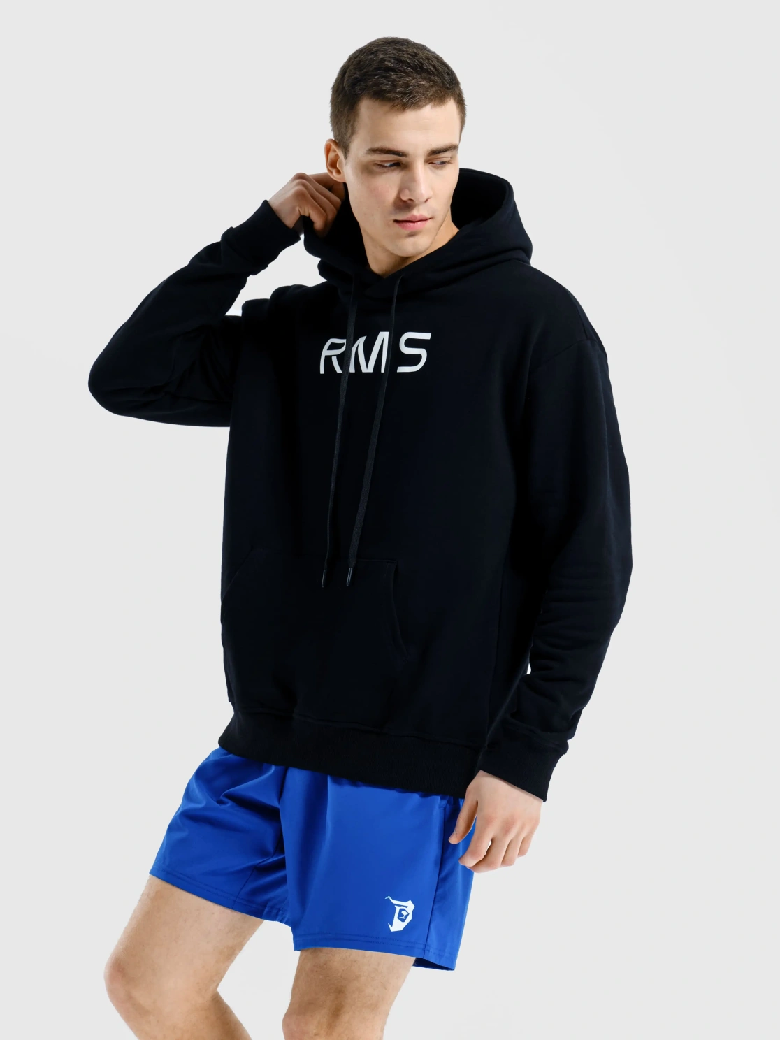 Мужское худи с капюшоном и логотипом RMS на груди. Модель представлена в однотонной черной цветовой гамме. Худи подойдет, как для повседневного, так и для спортивного лука. Фасон худи не создаст дискомфорта при активной носке.