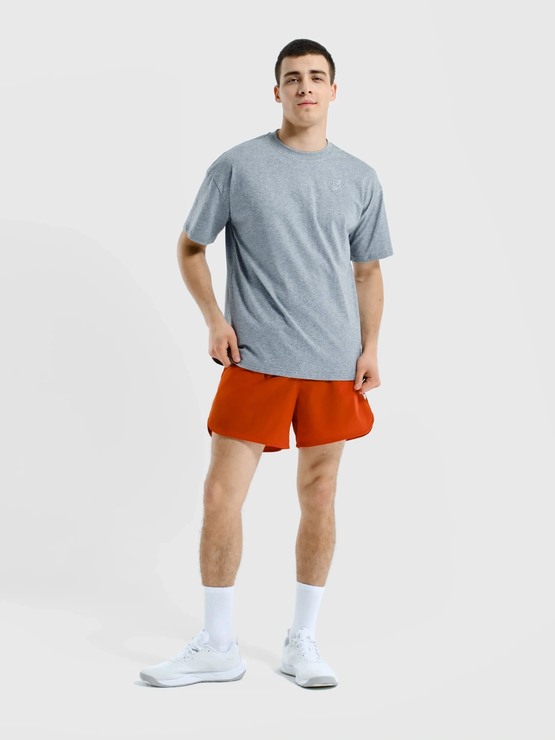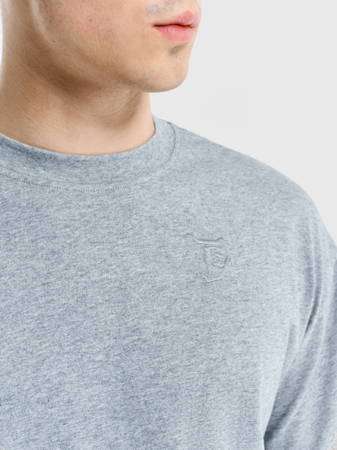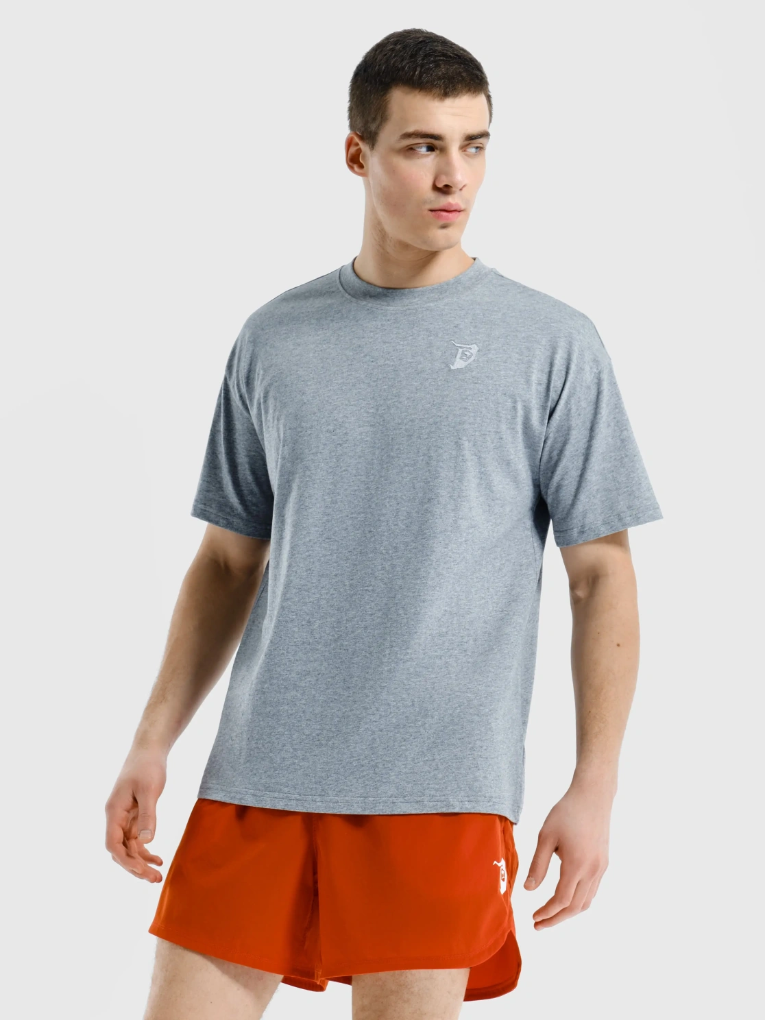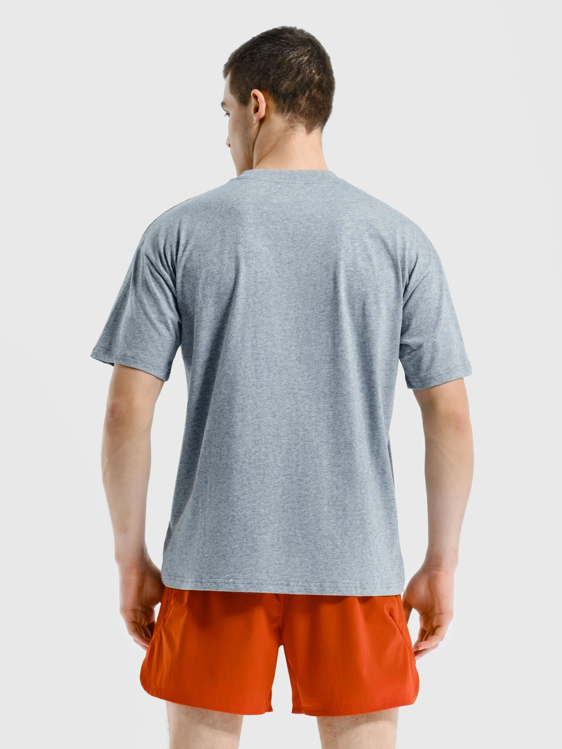Мужская футболка с логотипом на груди — хорошее сочетание комфорта и стиля. Фасон оверсайз не сковывает движения. В такой футболке вы будете выглядеть стильно, как на занятиях в зале, так и на прогулках. Модель выполнена в сером цвете.