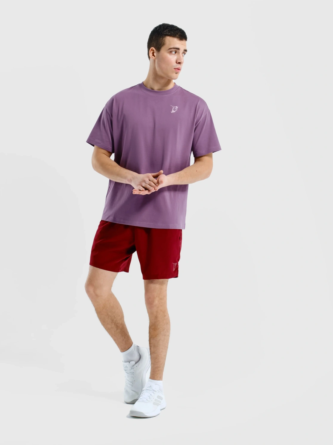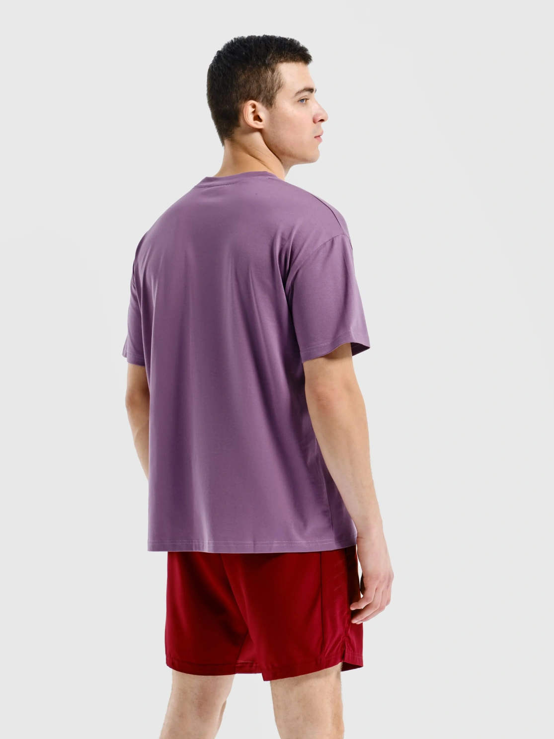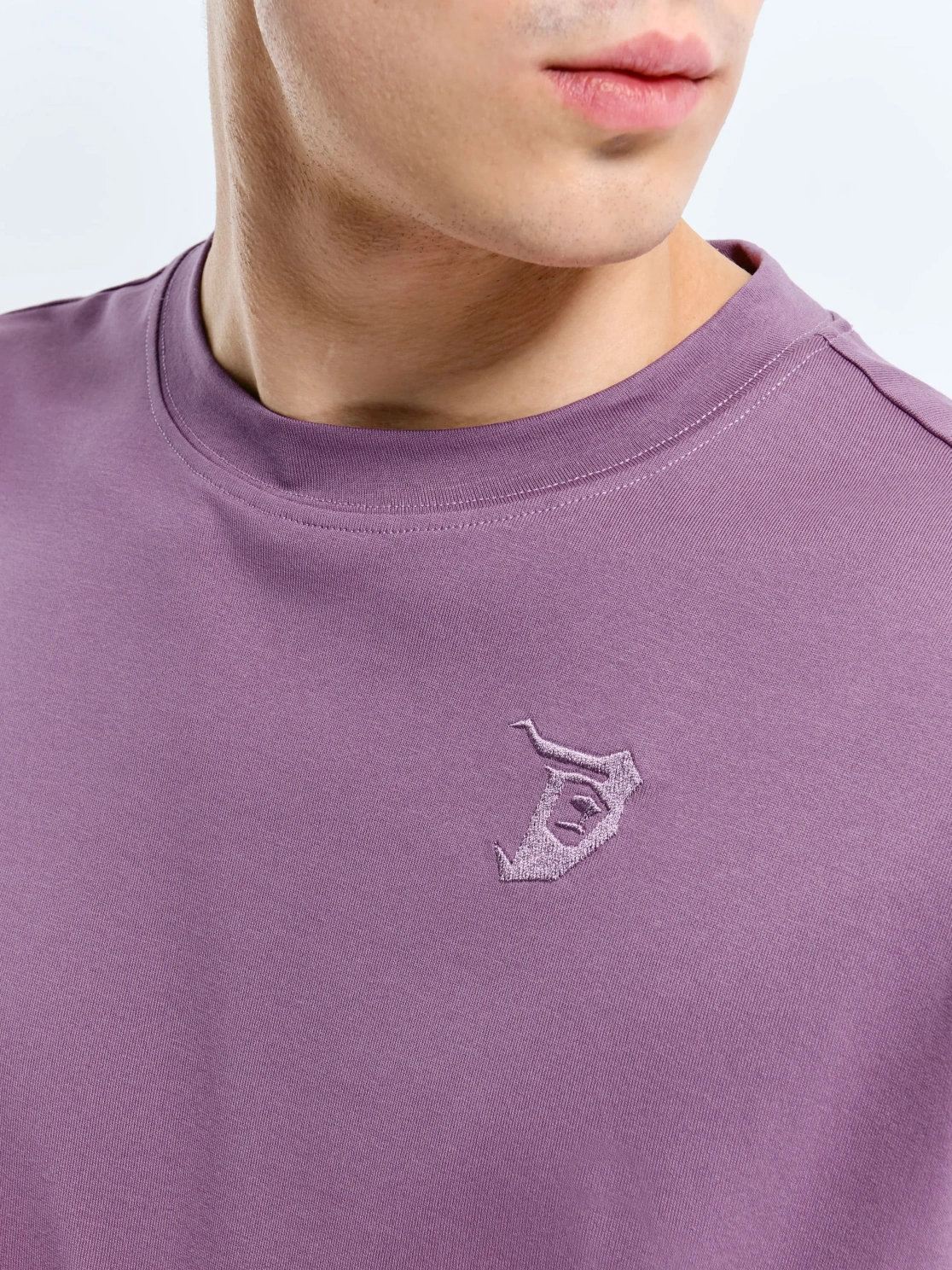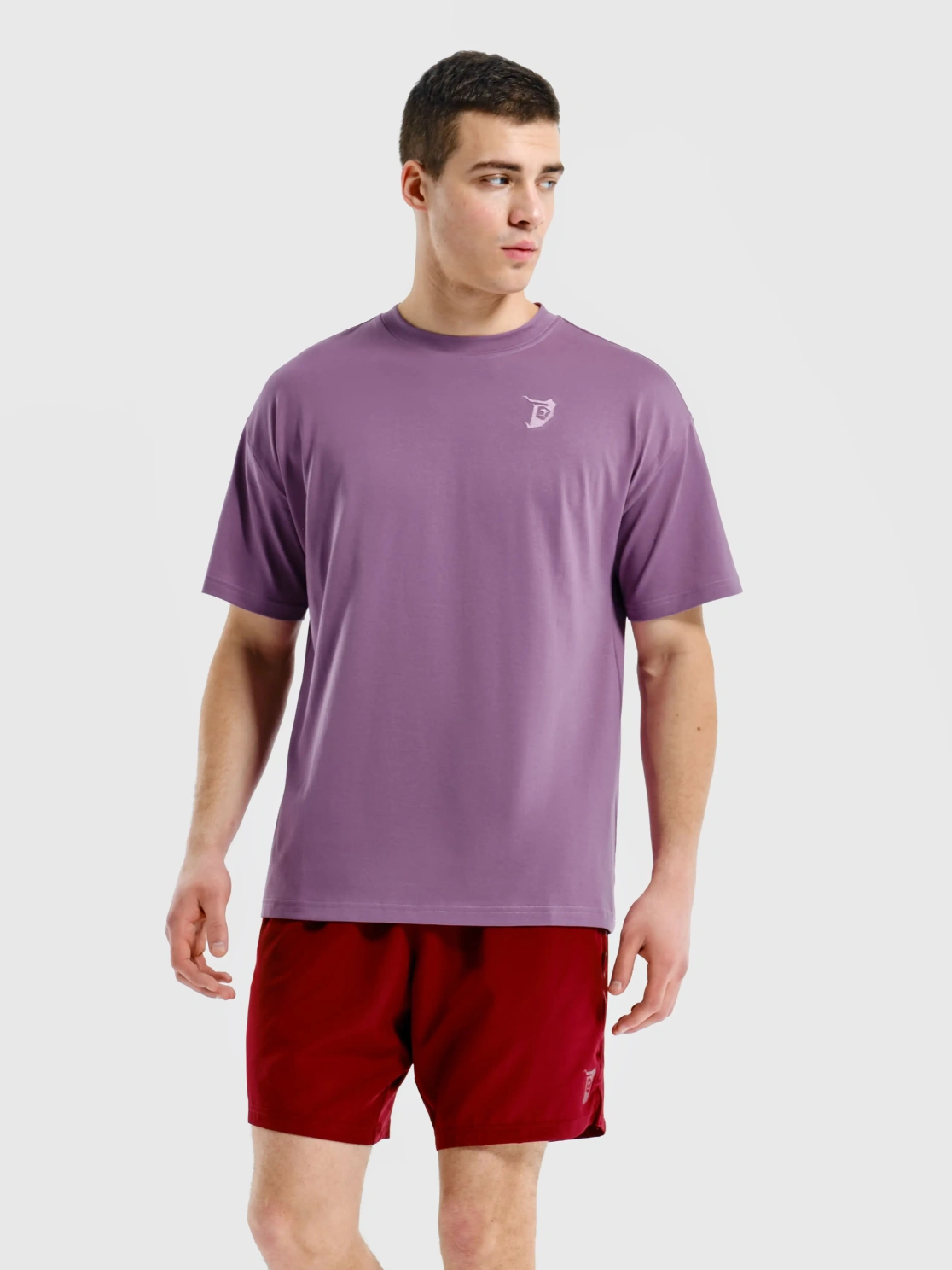 Мужская футболка с логотипом на груди — хорошее сочетание комфорта и стиля. Фасон оверсайз не сковывает движения. В такой футболке вы будете выглядеть стильно, как на занятиях в зале, так и на прогулках. Модель выполнена в лавандово-фиолетовом цвете.