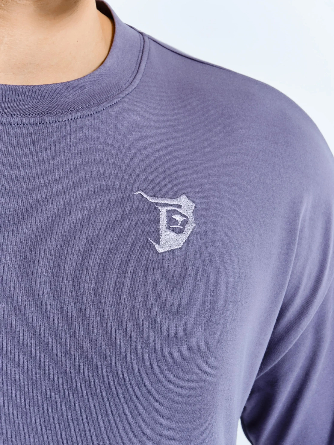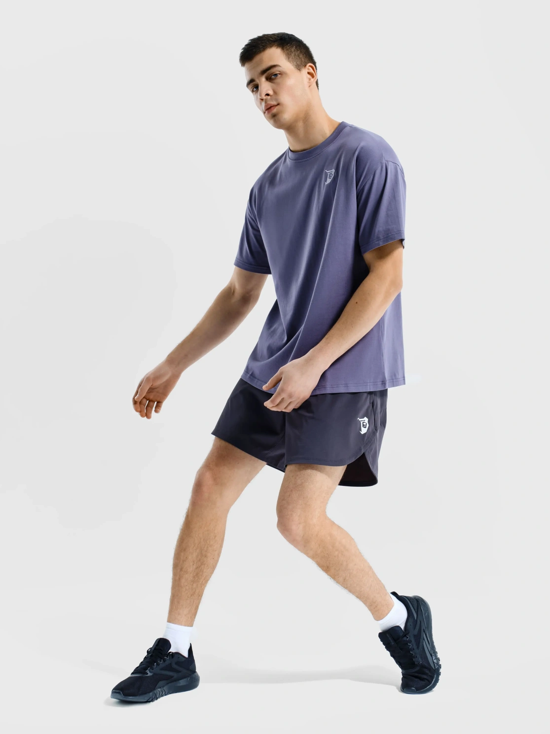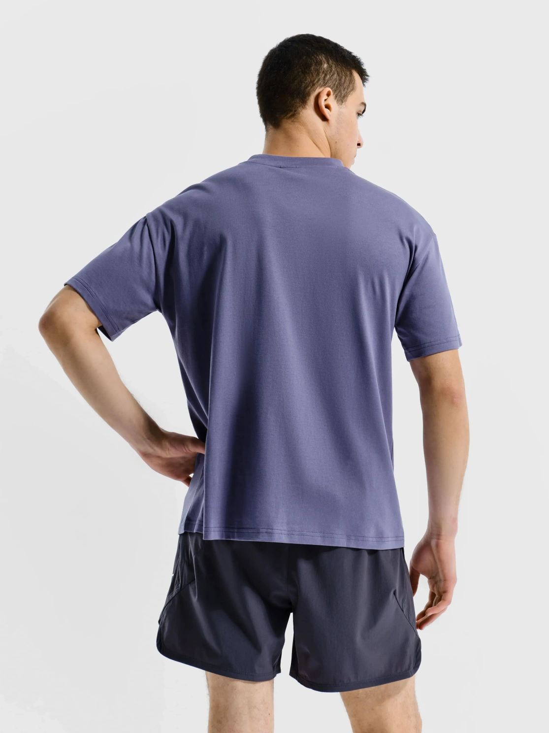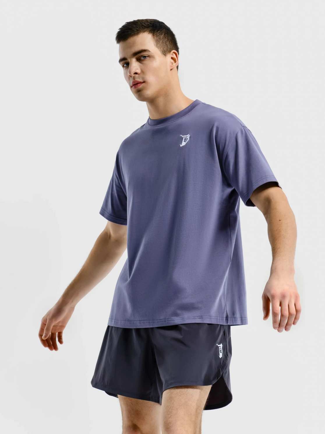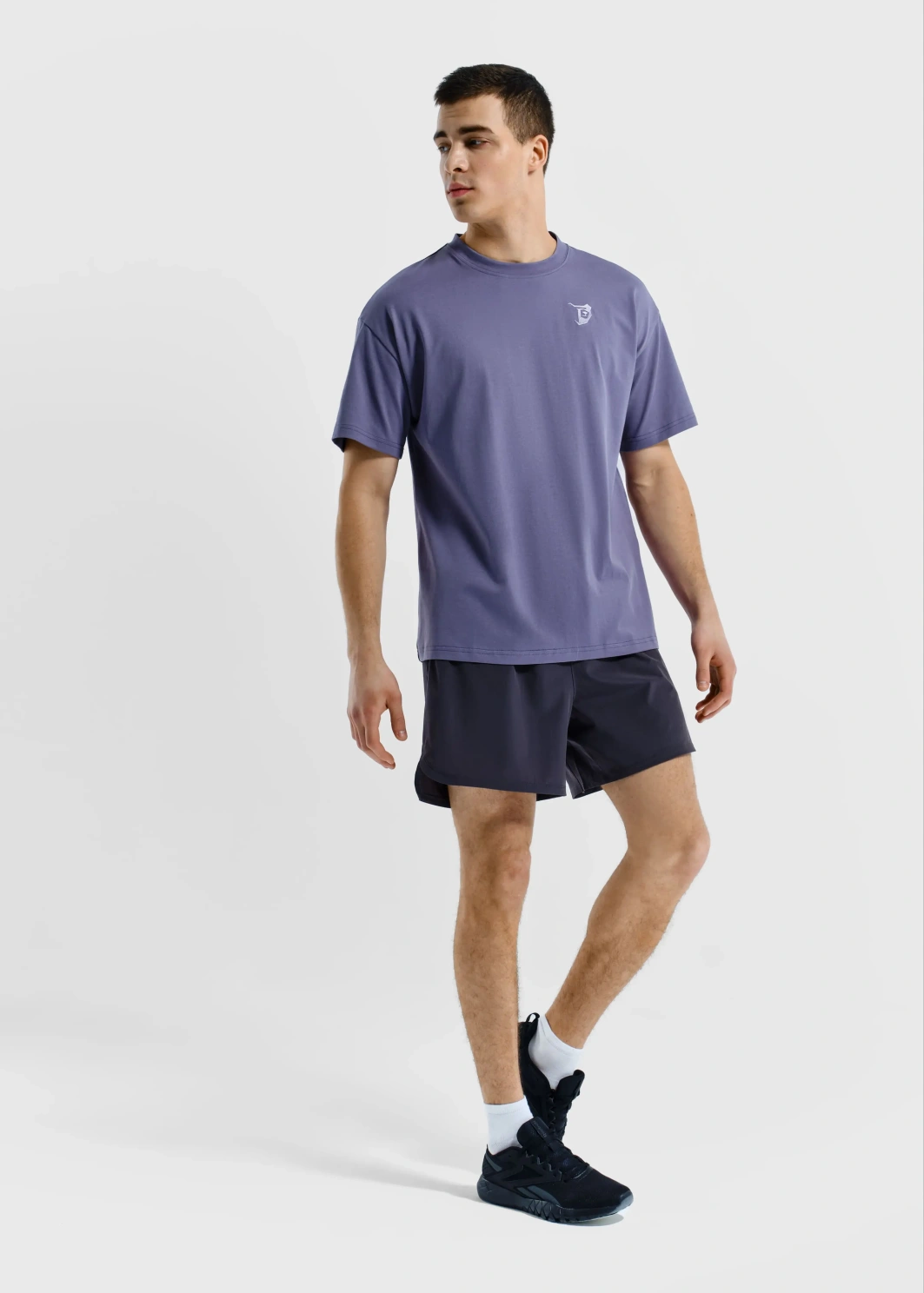 Мужская футболка с логотипом на груди — хорошее сочетание комфорта и стиля. Фасон оверсайз не сковывает движения. В такой футболке вы будете выглядеть стильно, как на занятиях в зале, так и на прогулках. Модель выполнена в светло-фиолетовом цвете.