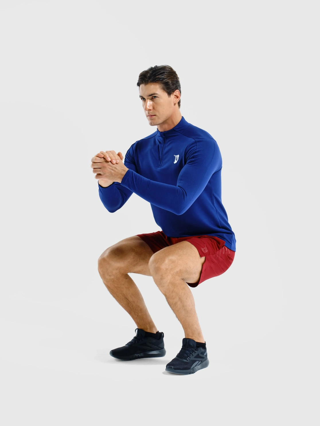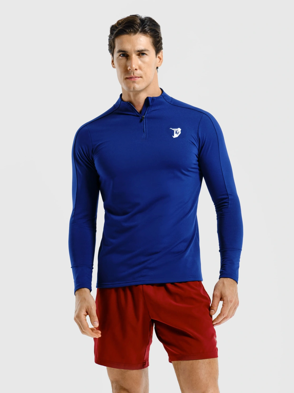 Мужской лонгслив в цветовой гамме ультрамарин. Сидит по фигуре, подчеркивая рельеф. Спереди на груди есть логотип медведя. Подходит для бодибилдеров, пауэрлифтеров и тех, кто хочет показать окружающим свои результаты от занятий в спортивном зале.