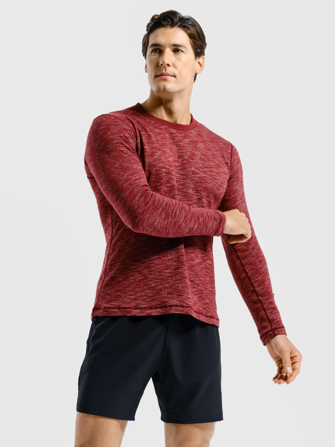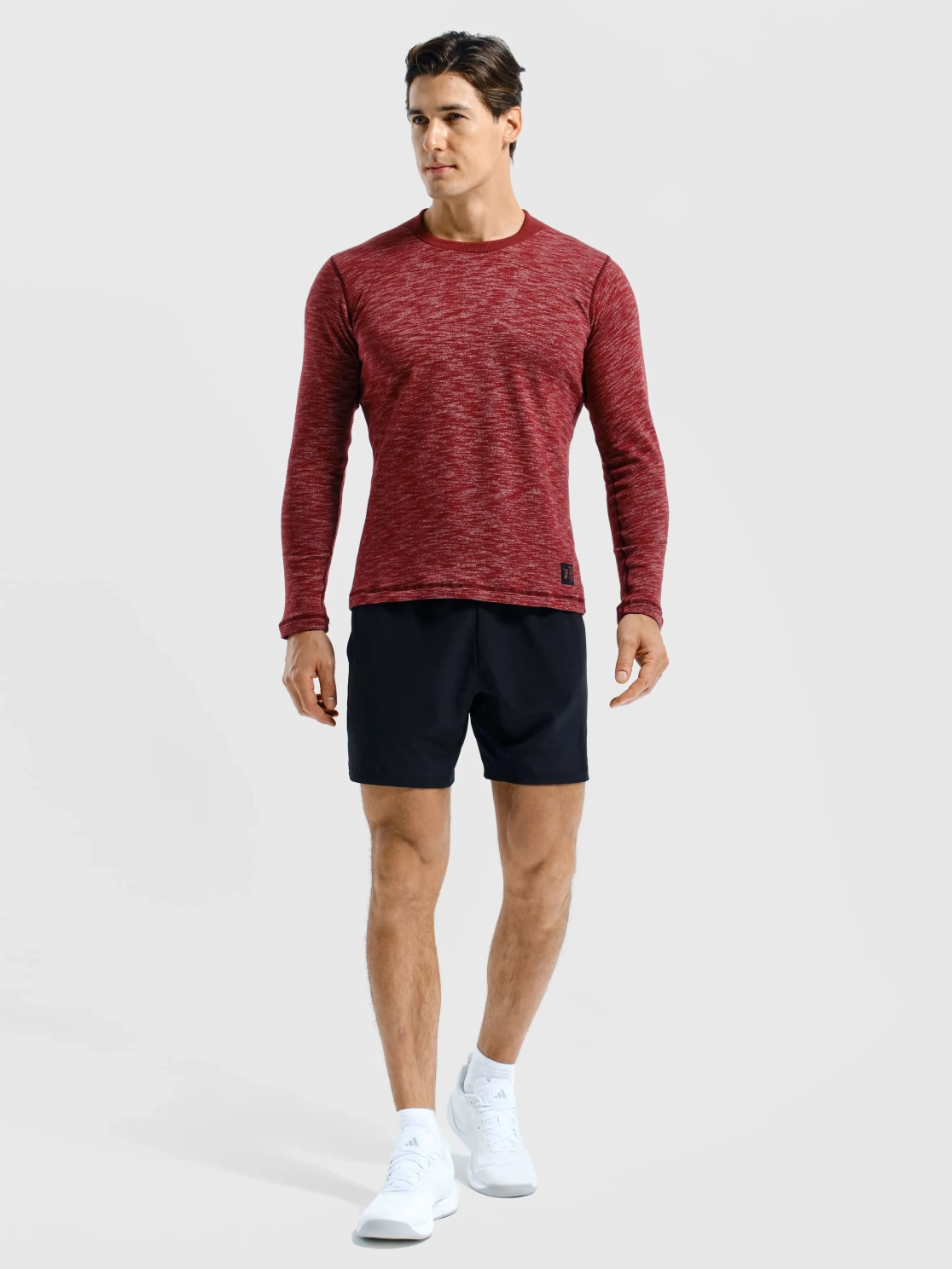 Мужской лонгслив в бордовом цвете из премиальной коллекции с логотипом и надписью внизу изделия. Модель предназначена как для спортивных образов, так и для повседневных. На выбор предоставляется несколько цветовых вариаций: лавандовый, черный, бордовый и светло-зеленый. Прямой силуэт и длинные рукава способствуют поддержанию комфорта во время тренировок или других действий.