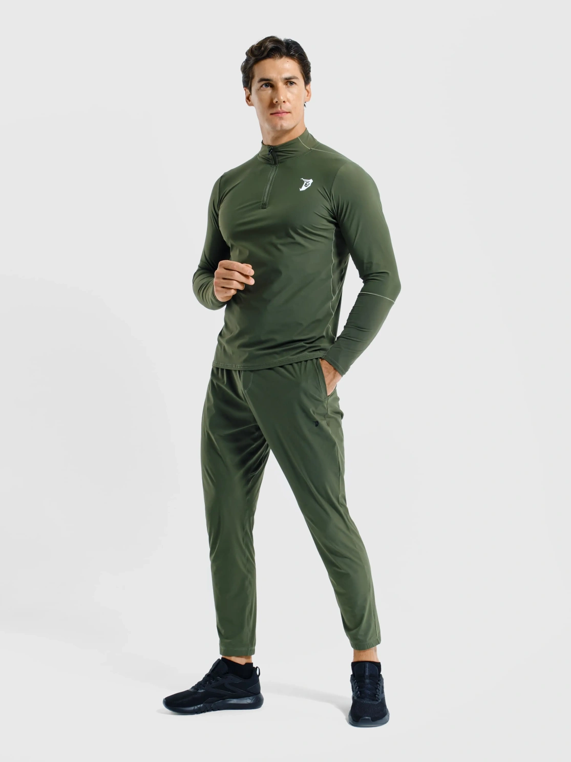 Мужской лонгслив с длинным рукавом цвета хаки YT-053