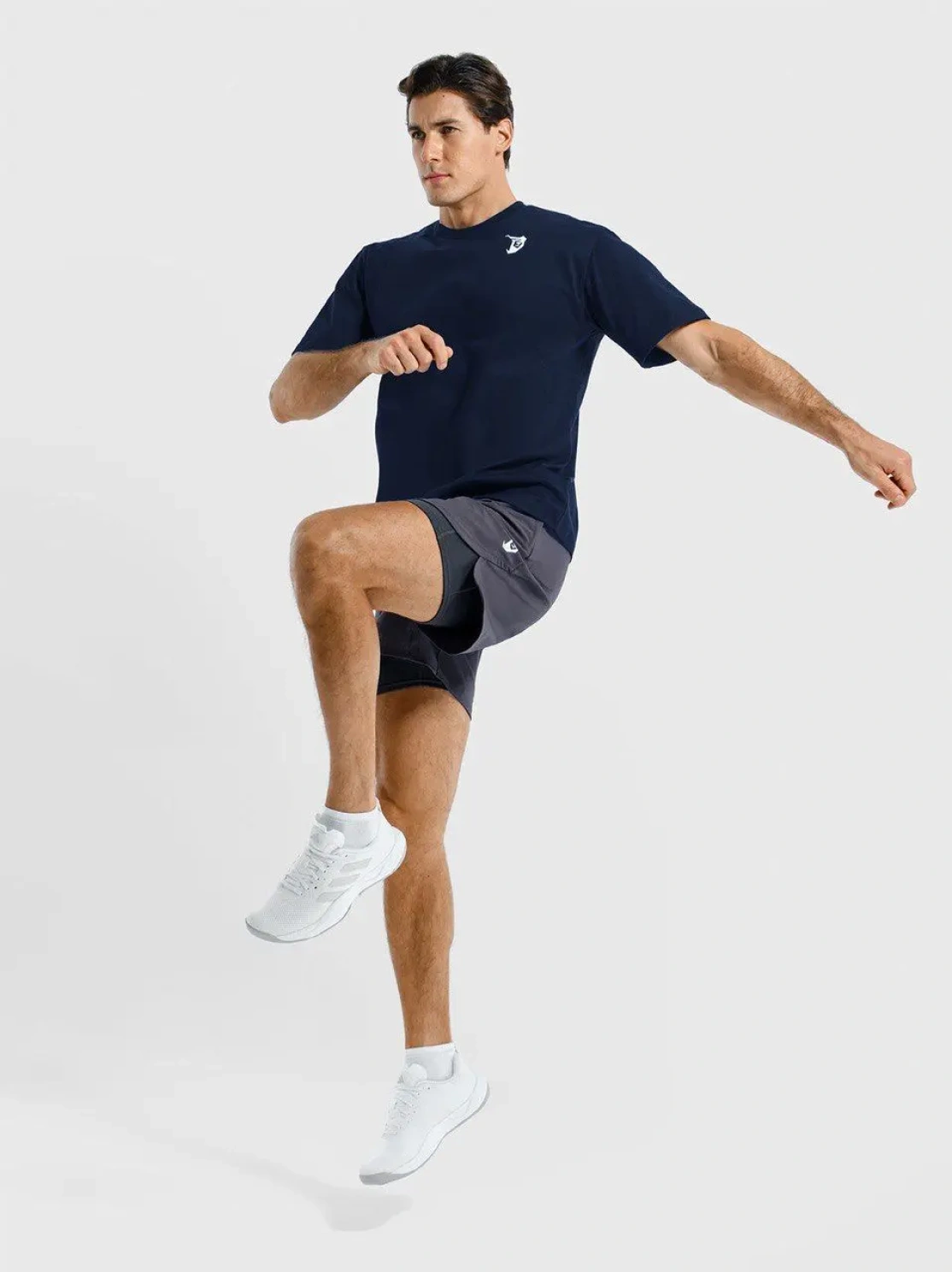 Мужская короткая футболка изготовлена из 100% хлопка, что делает ее превосходным выбором для занятий спортом. Хлопок - это натуральный материал, который отлично впитывает влагу, обеспечивая комфортное ощущение и поддерживая оптимальный температурный баланс во время тренировок. Благодаря хорошей воздухопроницаемости и мягкости ткани, эта футболка обеспечивает свободу движений и минимизирует риск раздражений кожи.