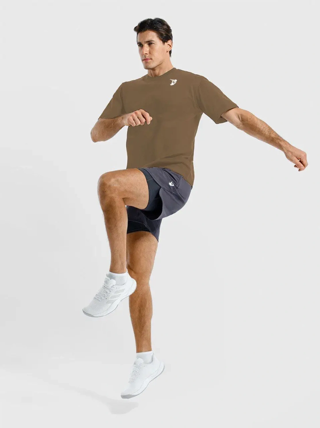 Мужская короткая футболка изготовлена из 100% хлопка, что делает ее превосходным выбором для занятий спортом. Хлопок - это натуральный материал, который отлично впитывает влагу, обеспечивая комфортное ощущение и поддерживая оптимальный температурный баланс во время тренировок. Благодаря хорошей воздухопроницаемости и мягкости ткани, эта футболка обеспечивает свободу движений и минимизирует риск раздражений кожи.