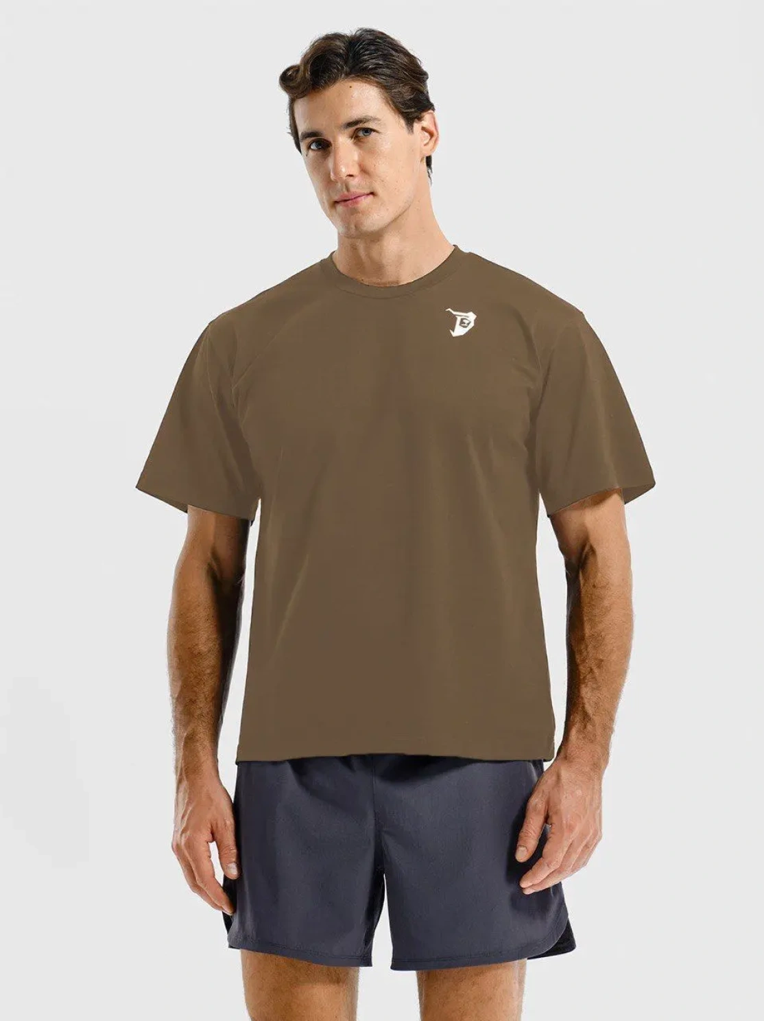 Мужская короткая футболка в светло-кофейном цвете станет незаменимым элементом гардероба для любого мужчины. Качественный материал обеспечивает комфорт и свободу движений в течение всего дня. Логотип, выполненный в том же цвете, придает изделию стильный и современный вид. Футболка прекрасно сочетается с джинсами, шортами или спортивными брюками. Подойдет как для повседневной носки, так и для активного отдыха.