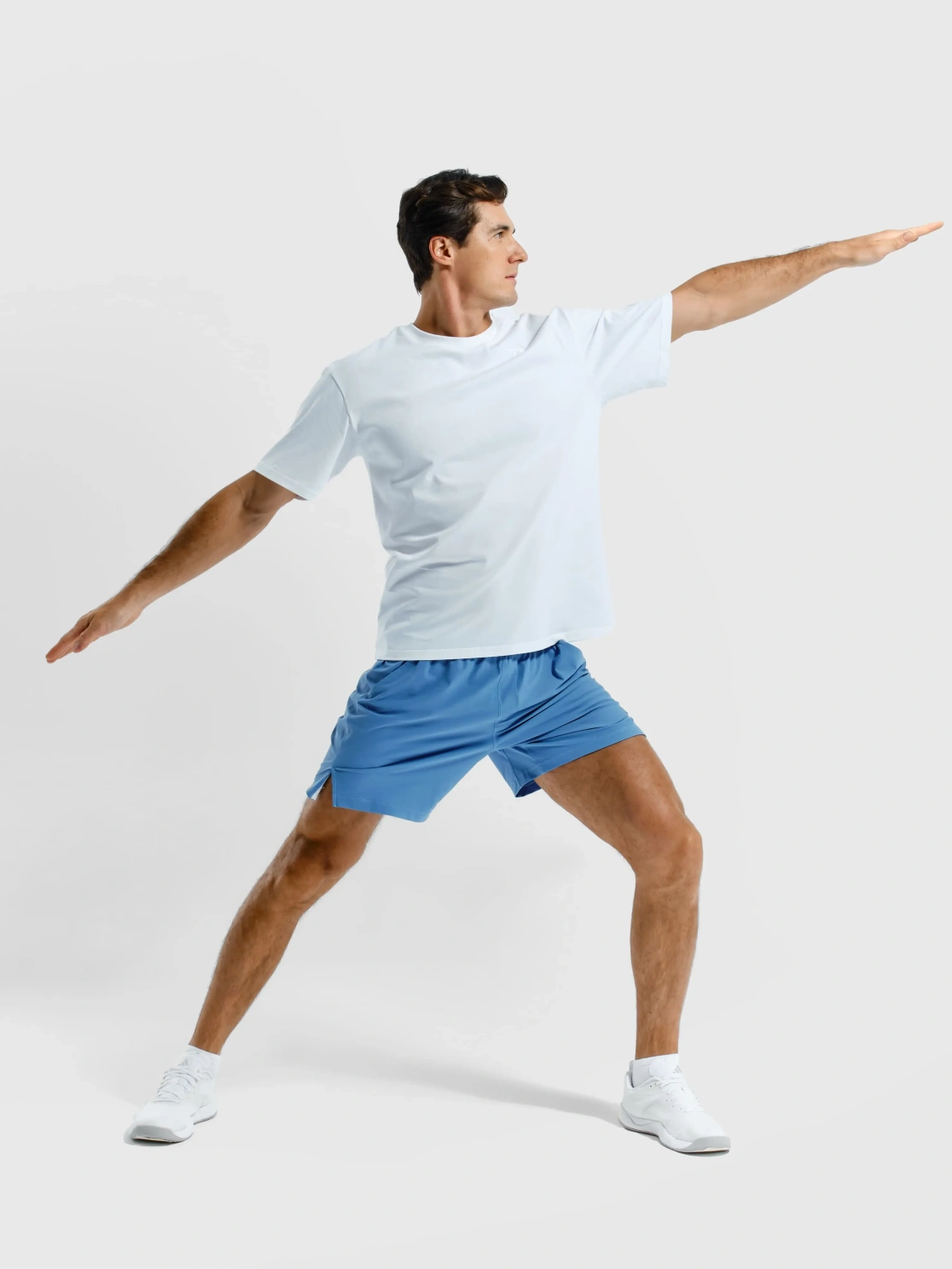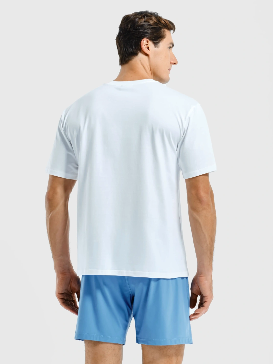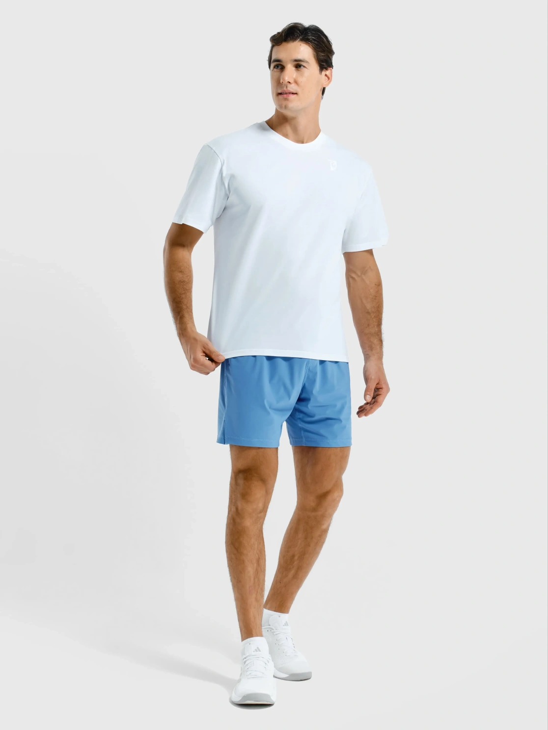Мужская короткая футболка изготовлена из 100% хлопка, что делает ее превосходным выбором для занятий спортом. Хлопок - это натуральный материал, который отлично впитывает влагу, обеспечивая комфортное ощущение и поддерживая оптимальный температурный баланс во время тренировок. Благодаря хорошей воздухопроницаемости и мягкости ткани, эта футболка обеспечивает свободу движений и минимизирует риск раздражений кожи.