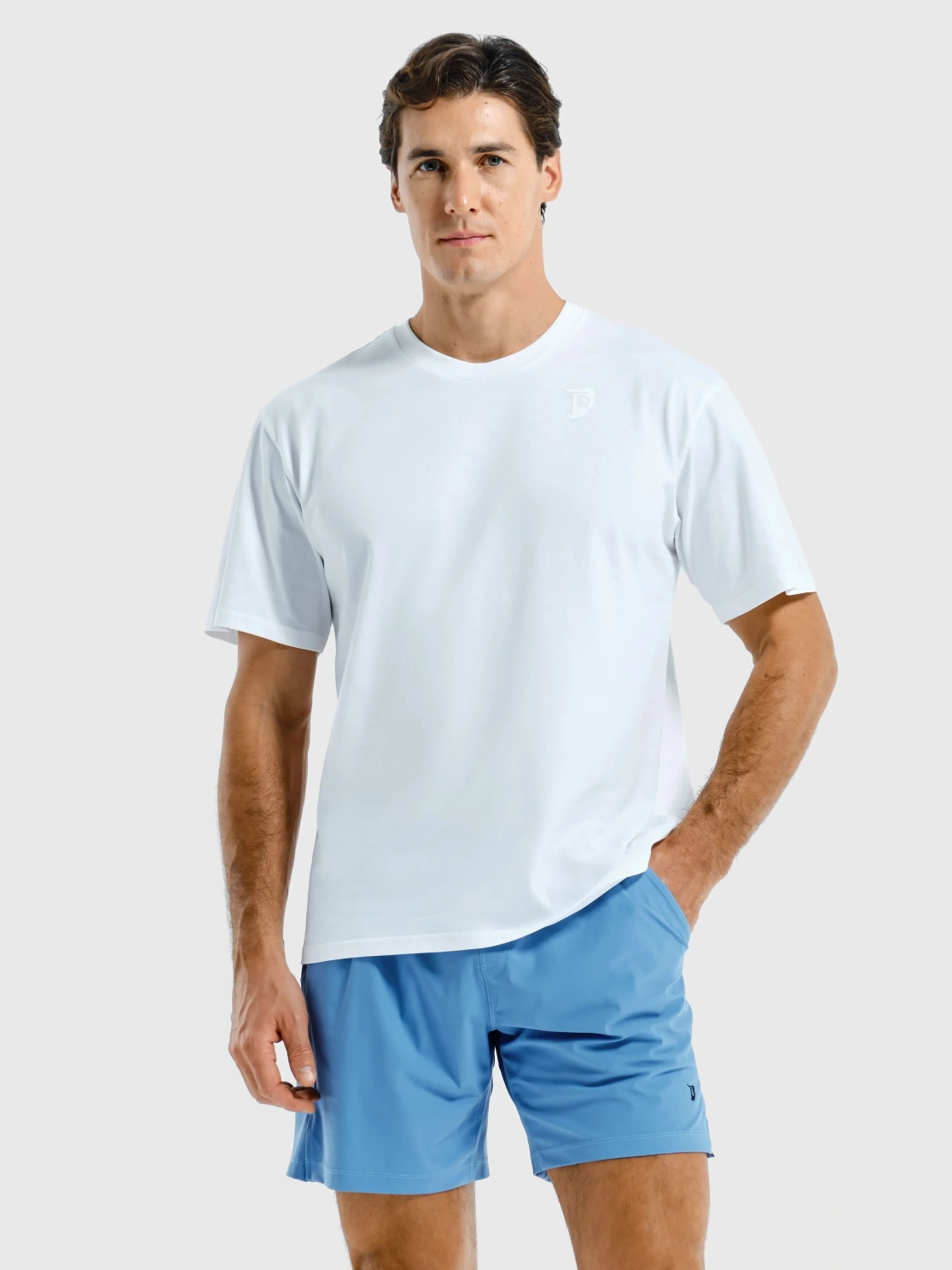 Мужская короткая футболка в белом цвете станет незаменимым элементом гардероба для любого мужчины. Качественный материал обеспечивает комфорт и свободу движений в течение всего дня. Логотип, выполненный в том же цвете, придает изделию стильный и современный вид. Футболка прекрасно сочетается с джинсами, шортами или спортивными брюками. Подойдет как для повседневной носки, так и для активного отдыха.