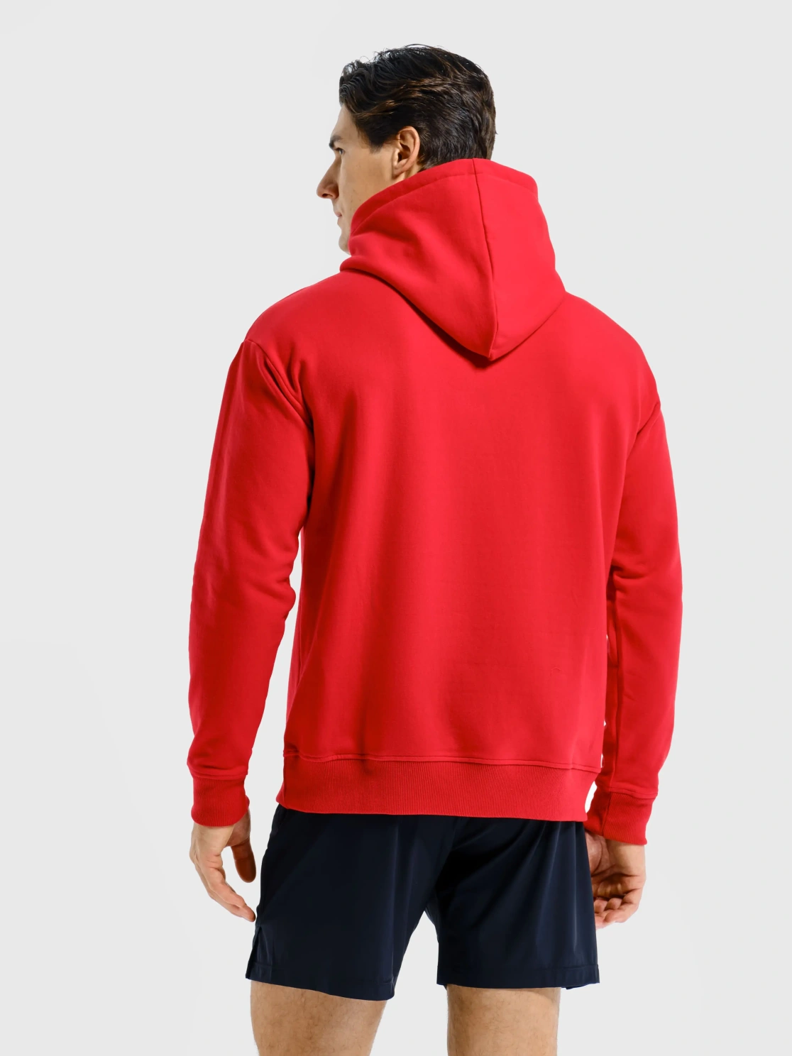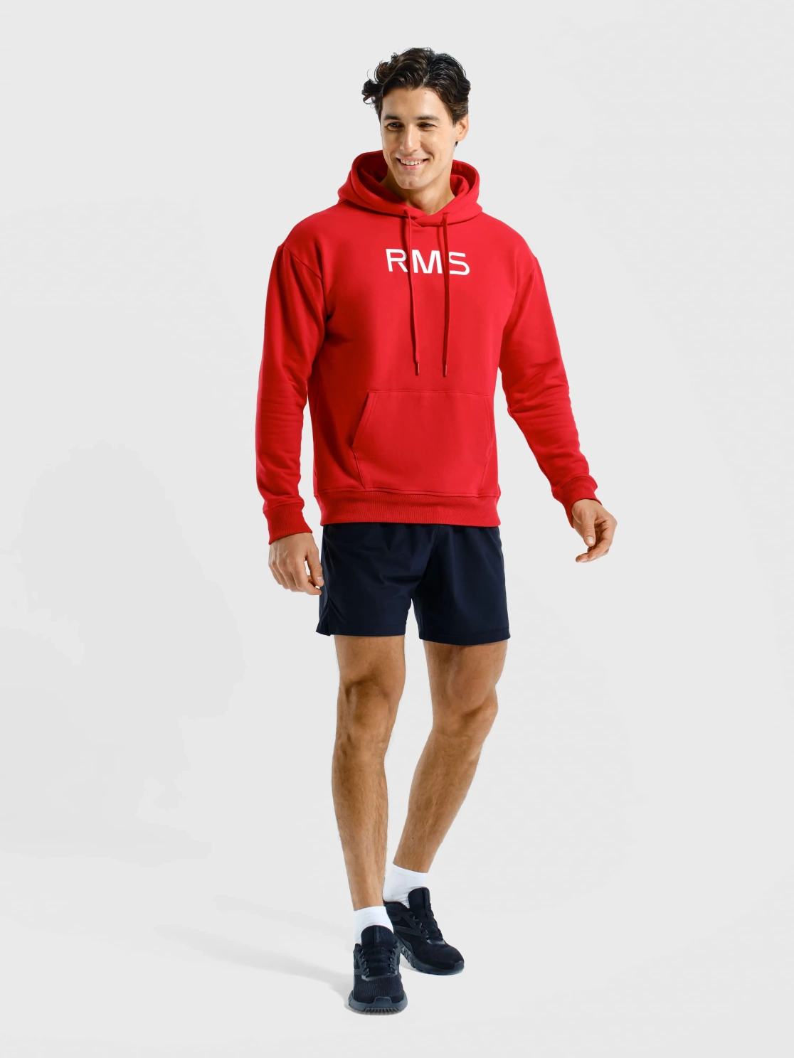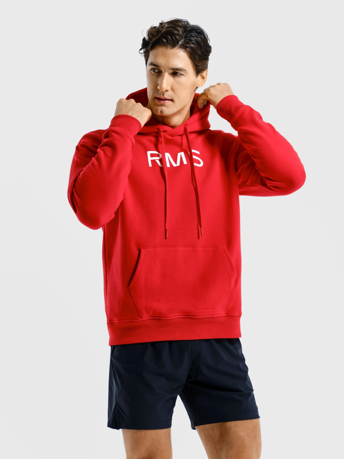 Мужское худи с капюшоном и логотипом RMS на груди. Модель представлена в однотонной красной цветовой гамме. Худи подойдет, как для повседневного, так и для спортивного лука. Фасон худи не создаст дискомфорта при активной носке.