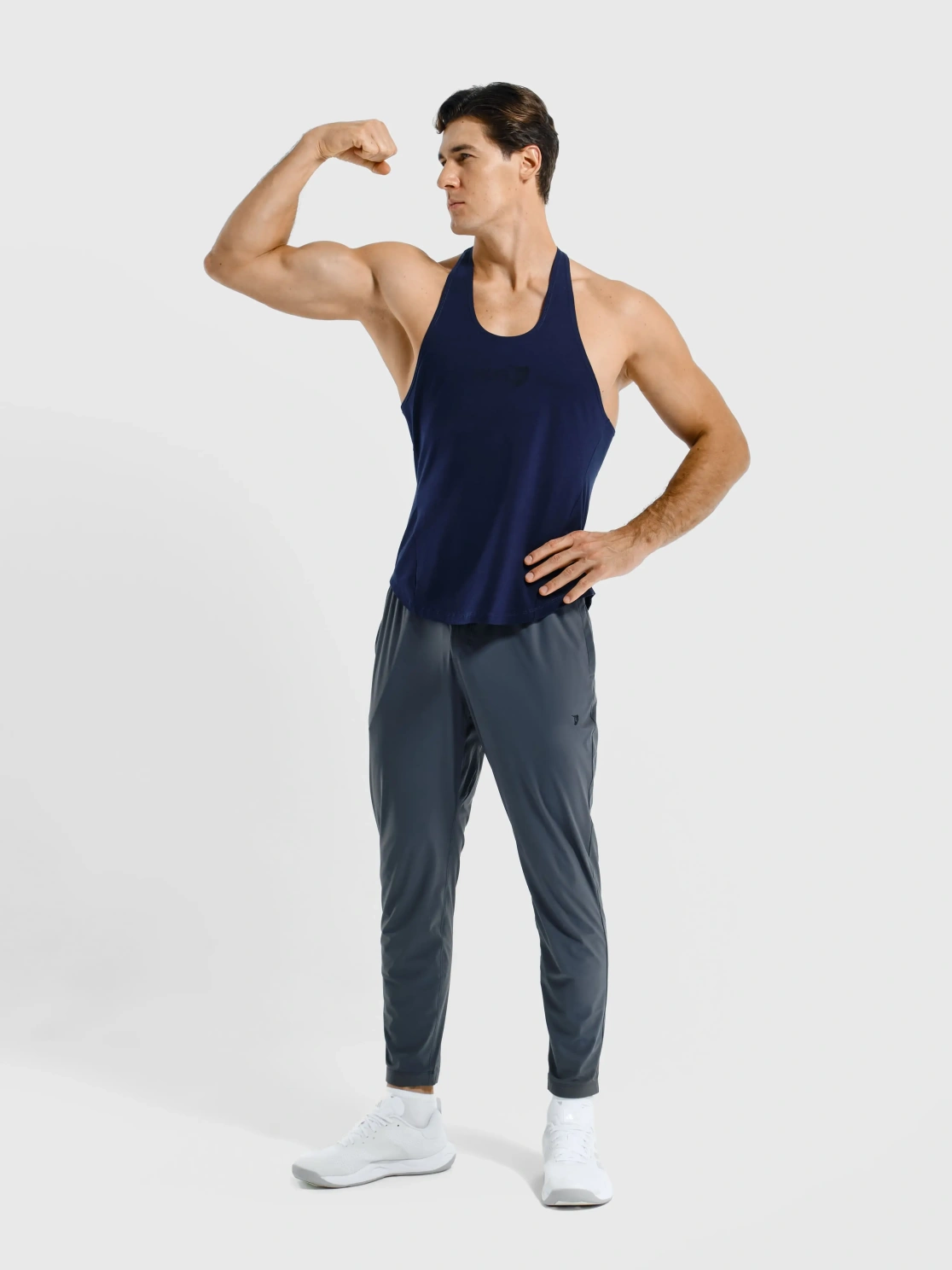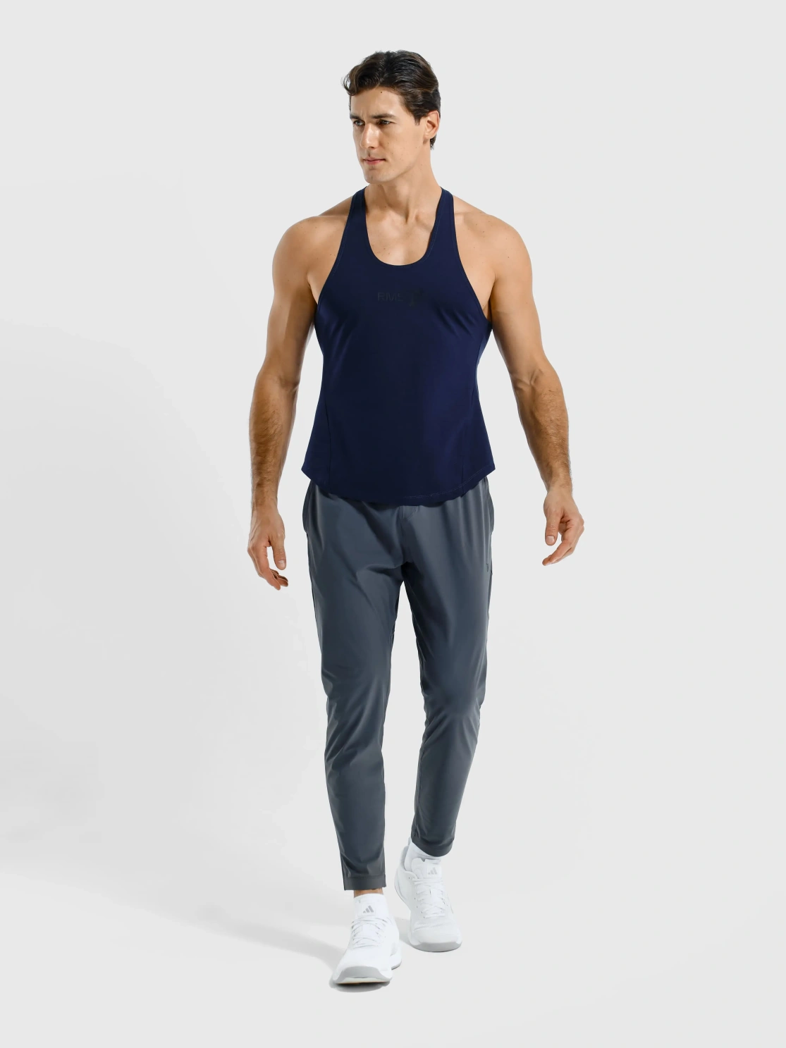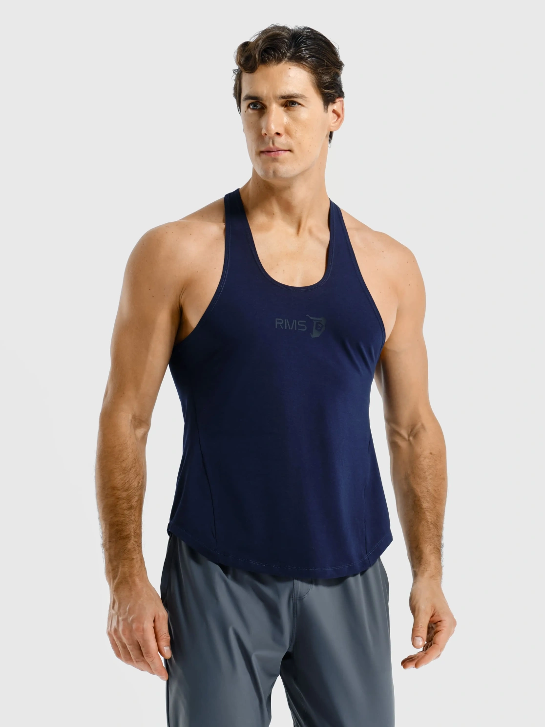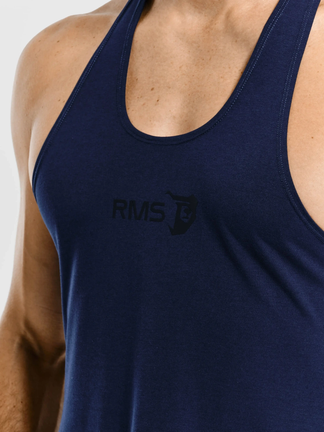 Подчеркивающая мужскую фигуру майка без рукавов с надписью RMS и логотипом медведя на груди темно-синего цвета. Идеально подходят как под трикотажные спортивные брюки, так и под шорты. Теперь интенсивные тренировки в спортзале не проблема.