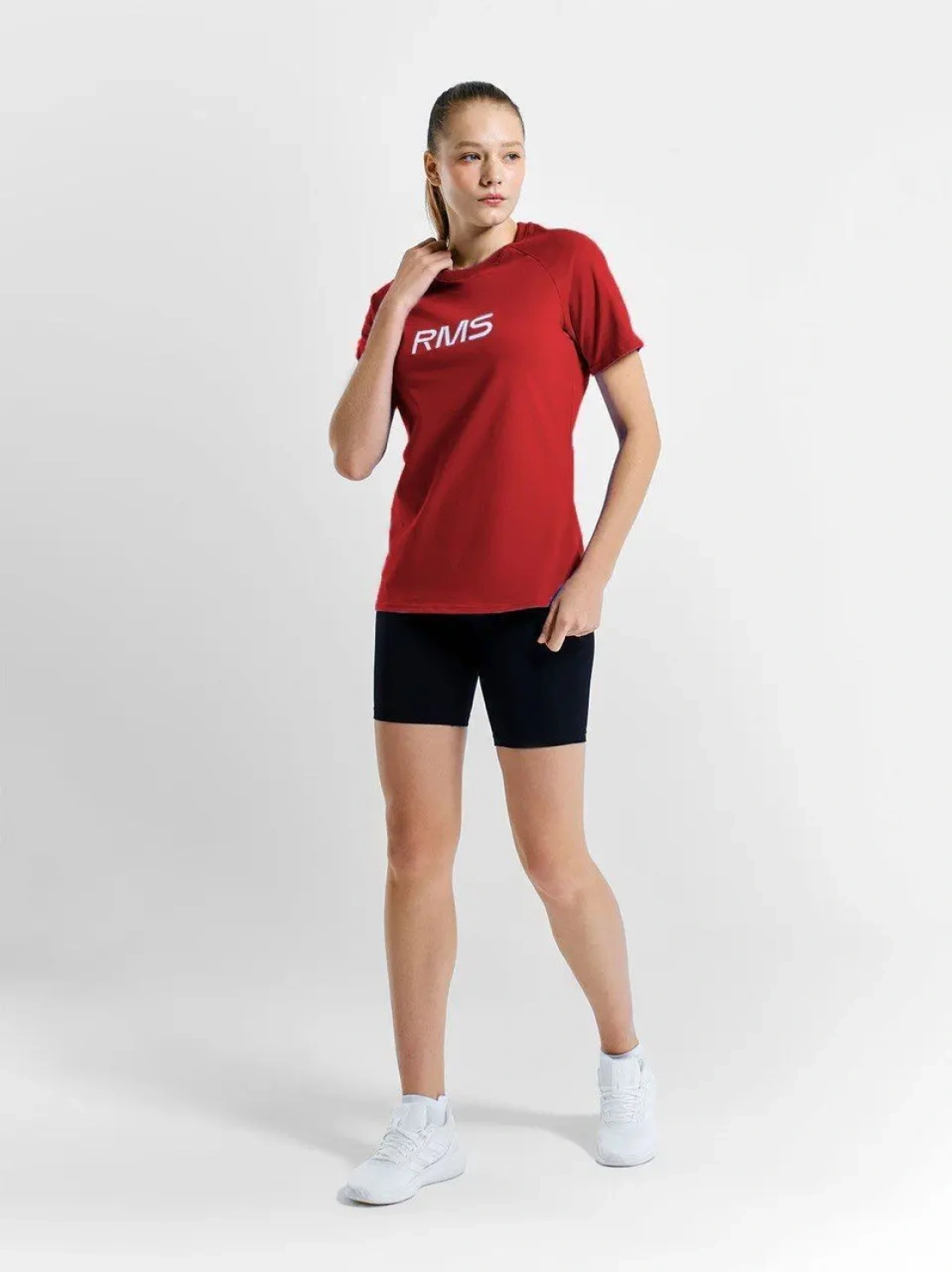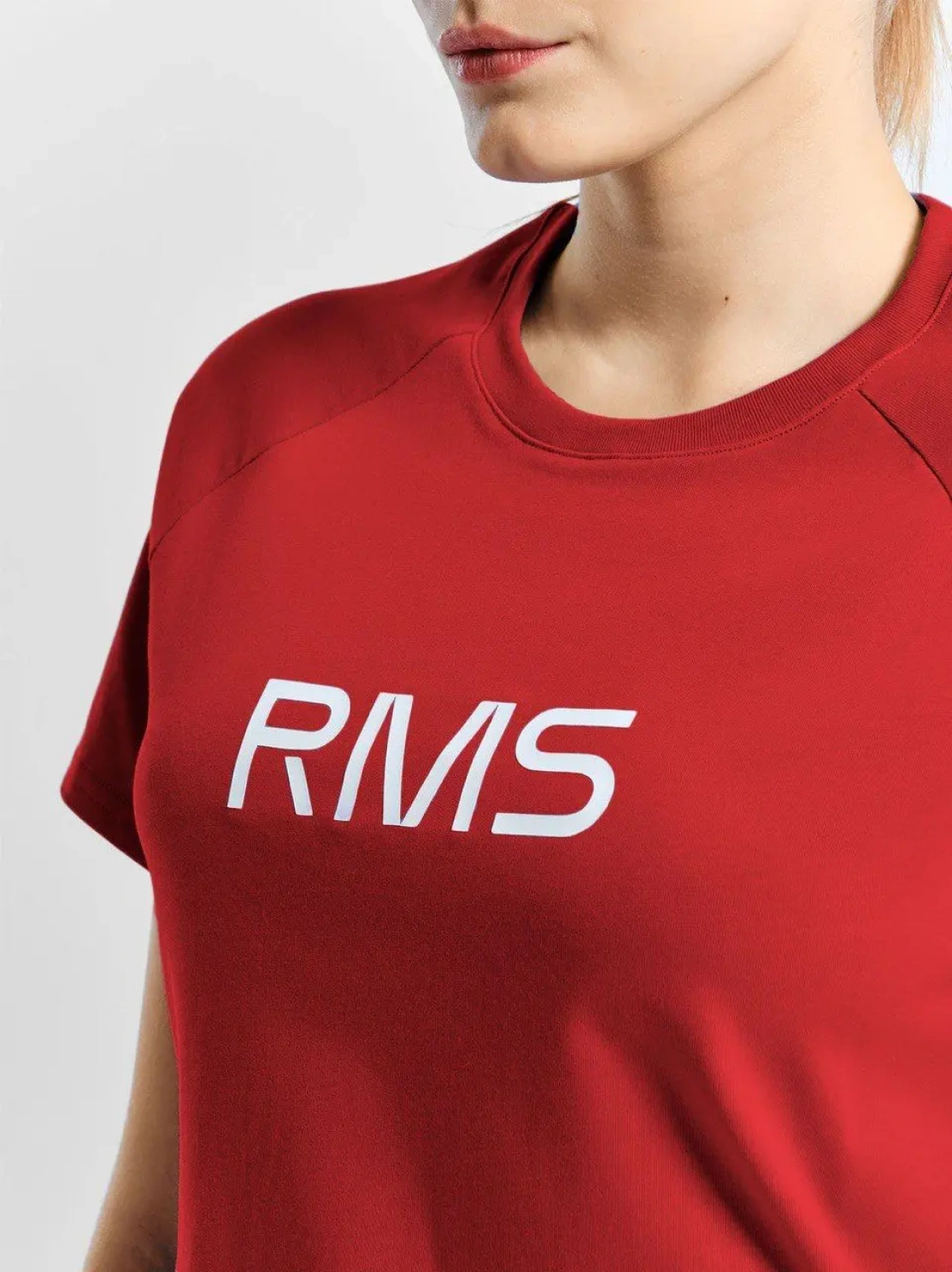Фирменная футболка с надписью RMS на груди в разных цветовых вариациях. Прямой силуэт изделия подчеркивает женскую фигуру, но в то же время не стесняет движения. В этой модели можно не только заниматься интенсивными тренировками в зале, но и выбирать ее в качестве элемента для повседневных аутфитов. Для любителей минимализма — классическое красное исполнение.
