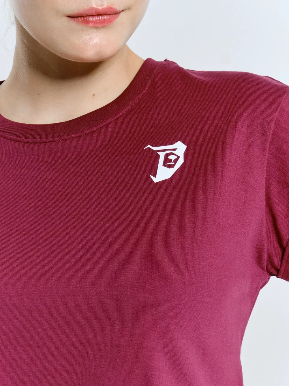 Женский топ для фитнеса свободного кроя с логотипом медведя на груди для любительниц ярких и нестандартных решений для занятий фитнесом в бордовом насыщенном цветовом решении. Фасон топа не облегает плотно тело, поэтому не создает неудобств во время тренировок. Разнообразие цветовых тонов расширяет возможности сочетать топ с любыми спортивными элементами из гардероба.