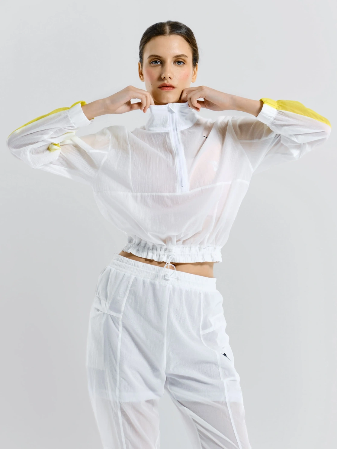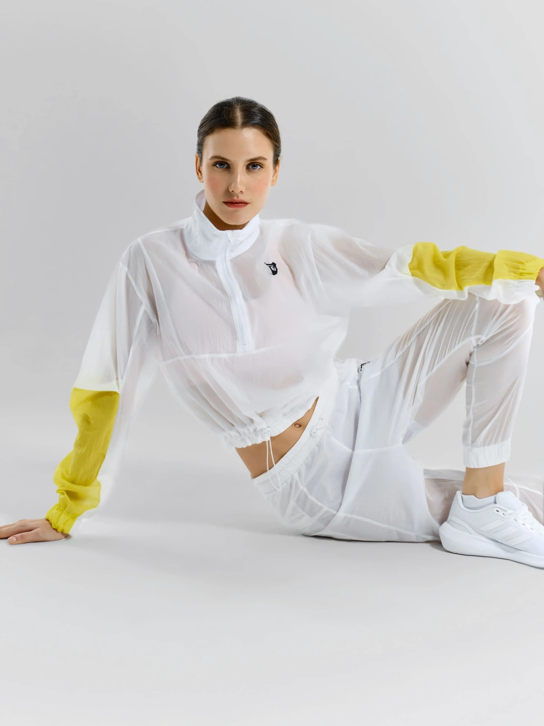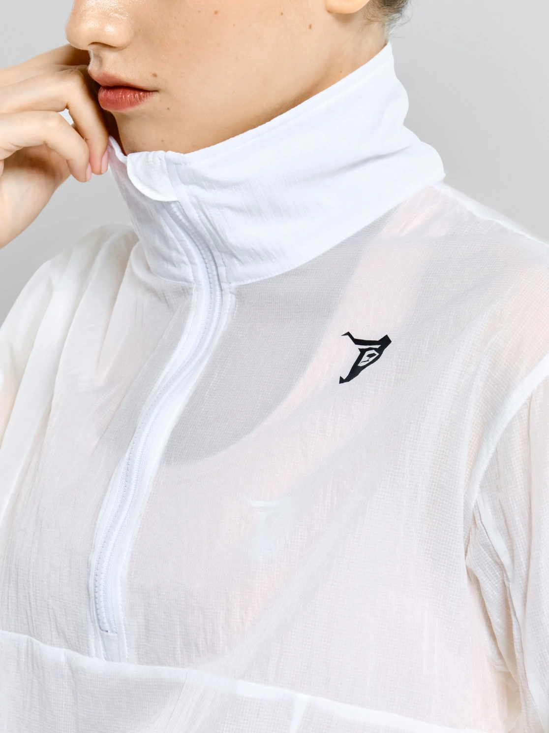 Женская белая ветровка с длинными рукавами – ваш незаменимый компаньон в прохладную летнюю погоду. Изготовленная из высококачественных материалов, она обеспечивает отличную защиту от ветра, легкого дождя, сохраняя при этом дышащие свойства.