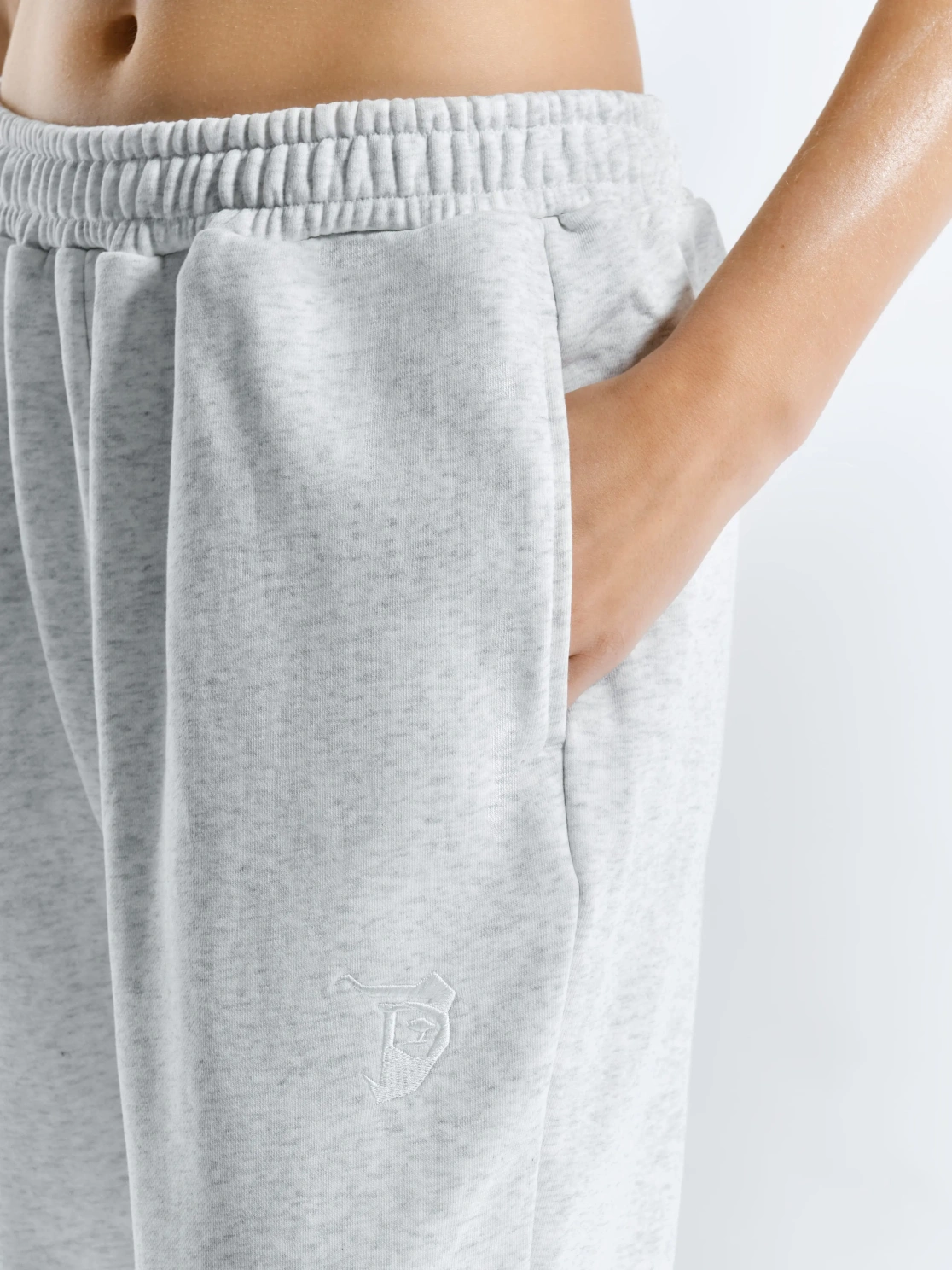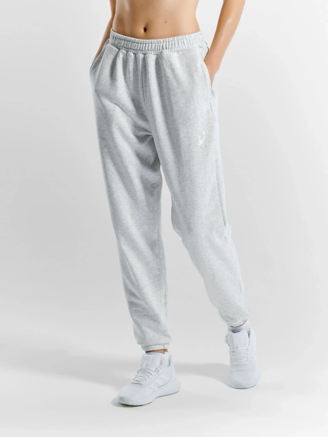 Стильные брюки для женщин в спортивной вариации с логотипом медведя в цвете меланж. Средняя посадка брюк фиксируется за счет регулируемой резинки. Брюки подходят не только для спорта, но и для дома или повседневных прогулок.