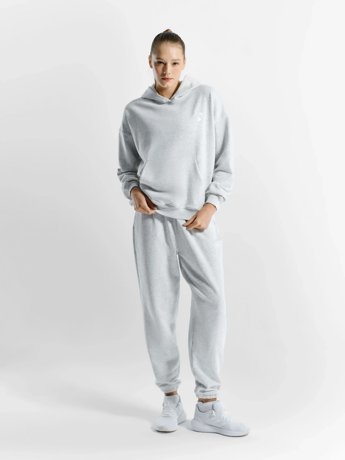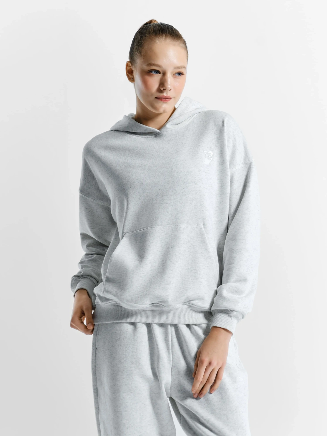 Женское худи с капюшоном и логотипом медведя на груди. Модель представлена в цвете меланж. Худи подойдет, как для повседневного, так и для спортивного лука. Прямой фасон не создаст дискомфорта при носке.