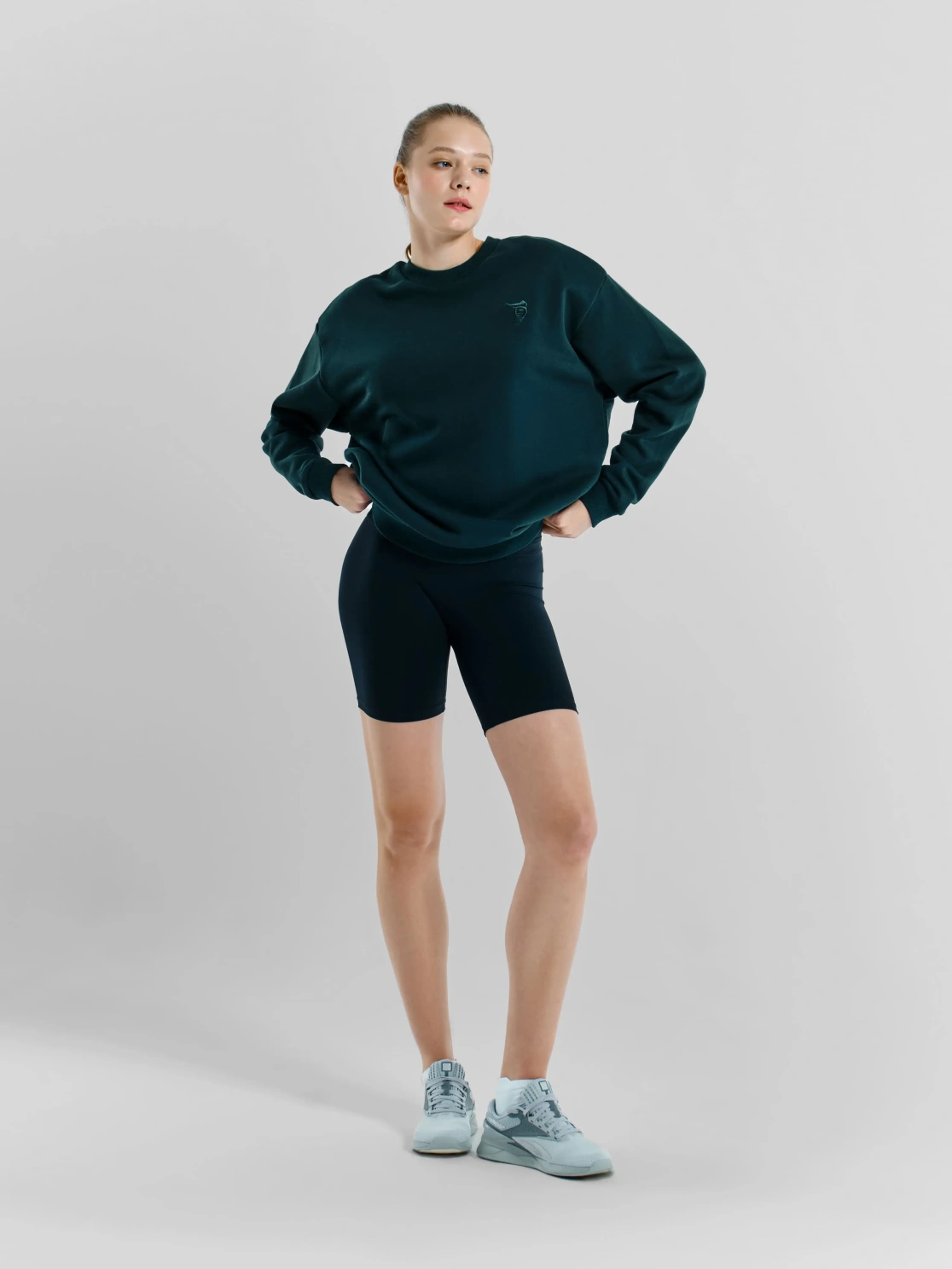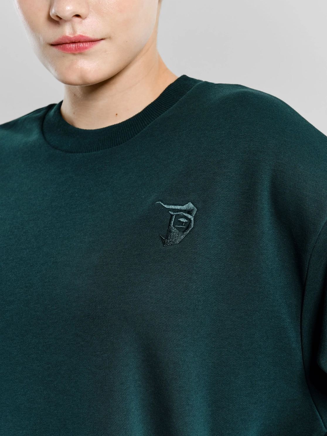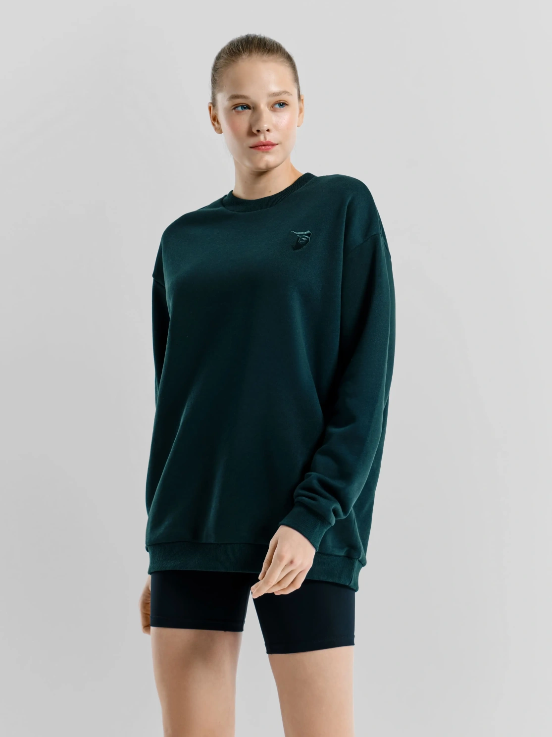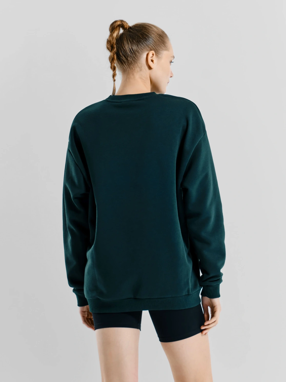 Женская спортивная толстовка с логотипом медведя на груди изумрудного цвета. Модель выполнена в удлиненном варианте. Сочетается не только со спортивными луками, поэтому вы можете смело комбинировать лонгслив с повседневным низом в виде джинс, брюк и юбок.