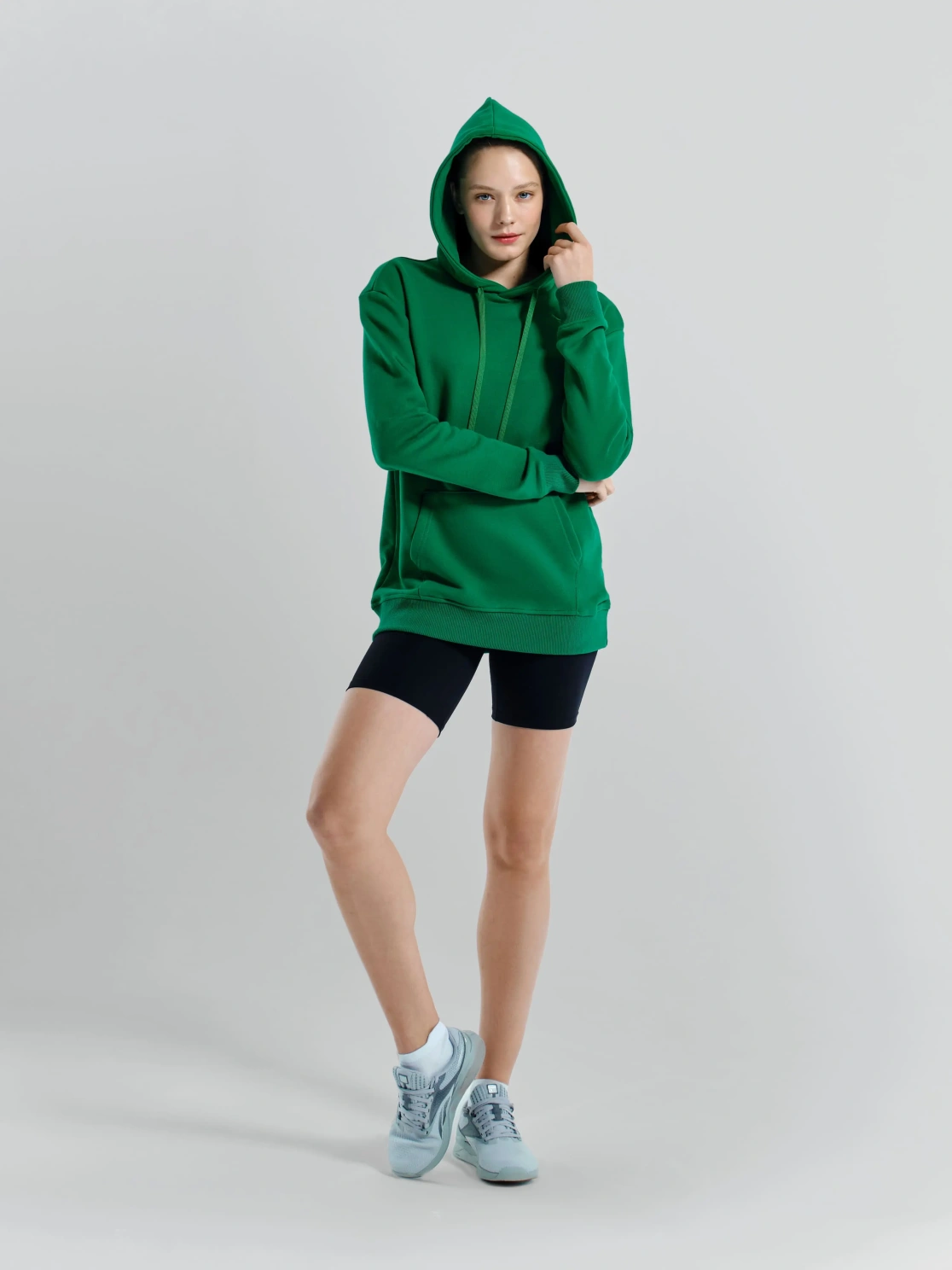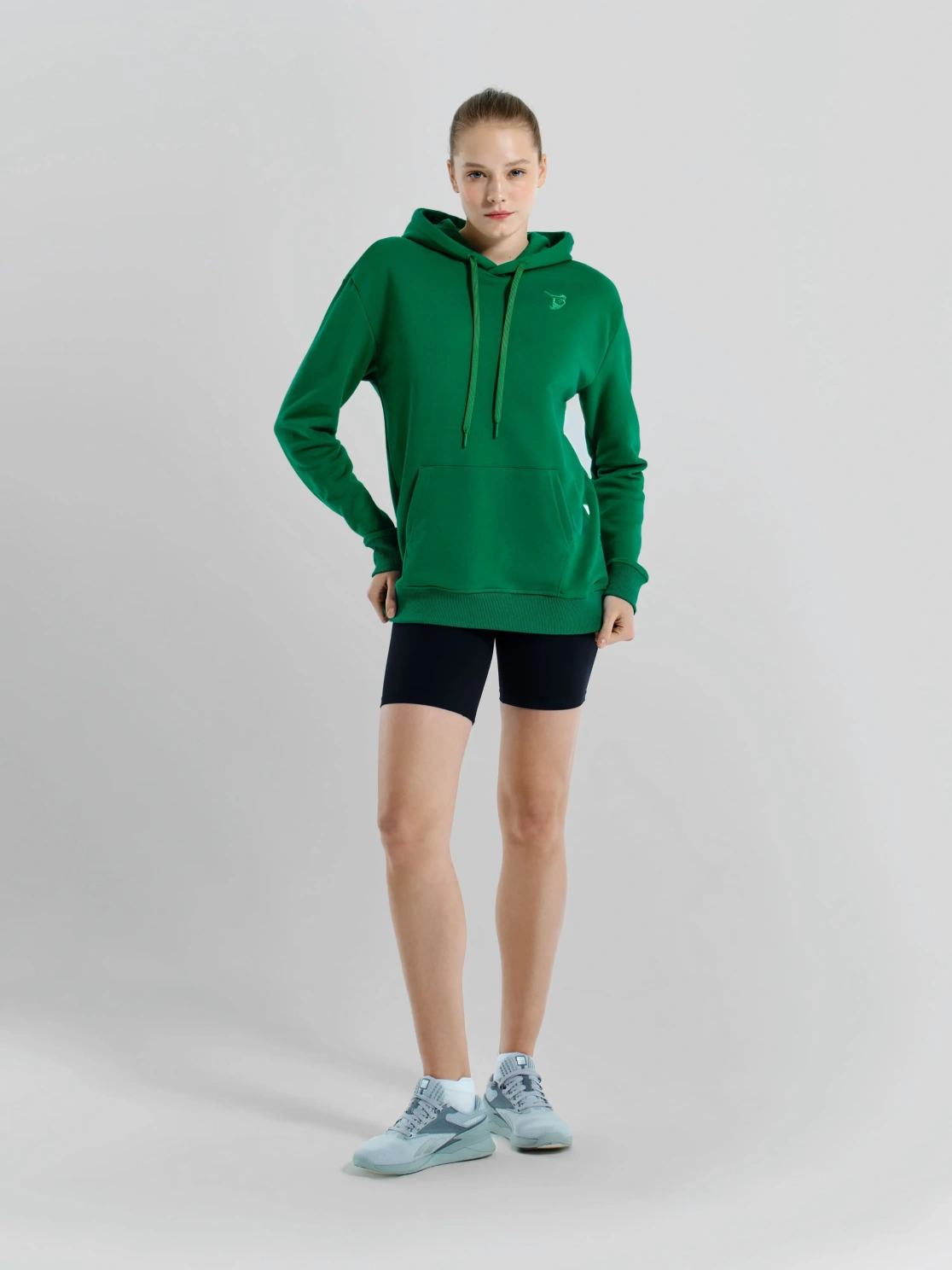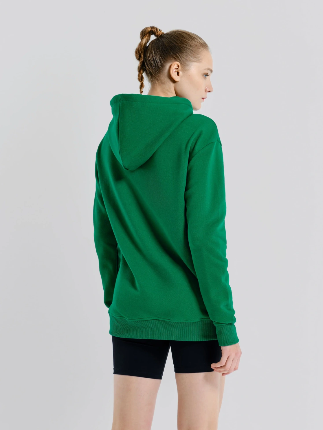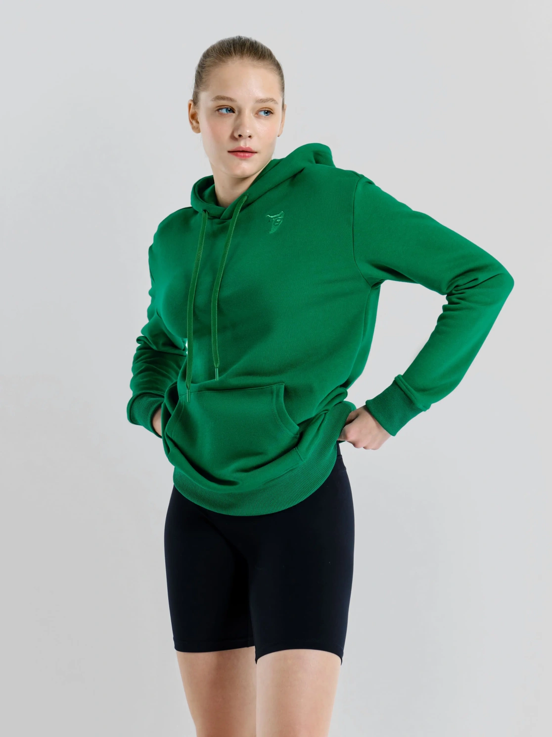 Женское худи ярких расцветок с логотипом медведя на груди в зеленом цвете. Модель с капюшоном и передним карманом кенгуру предназначена для активного отдыха или повседневной носки. Худи защищает от ветра и холода, благодаря плотной ткани. Силуэт прямой, поэтому при носке не возникает дискомфорта.