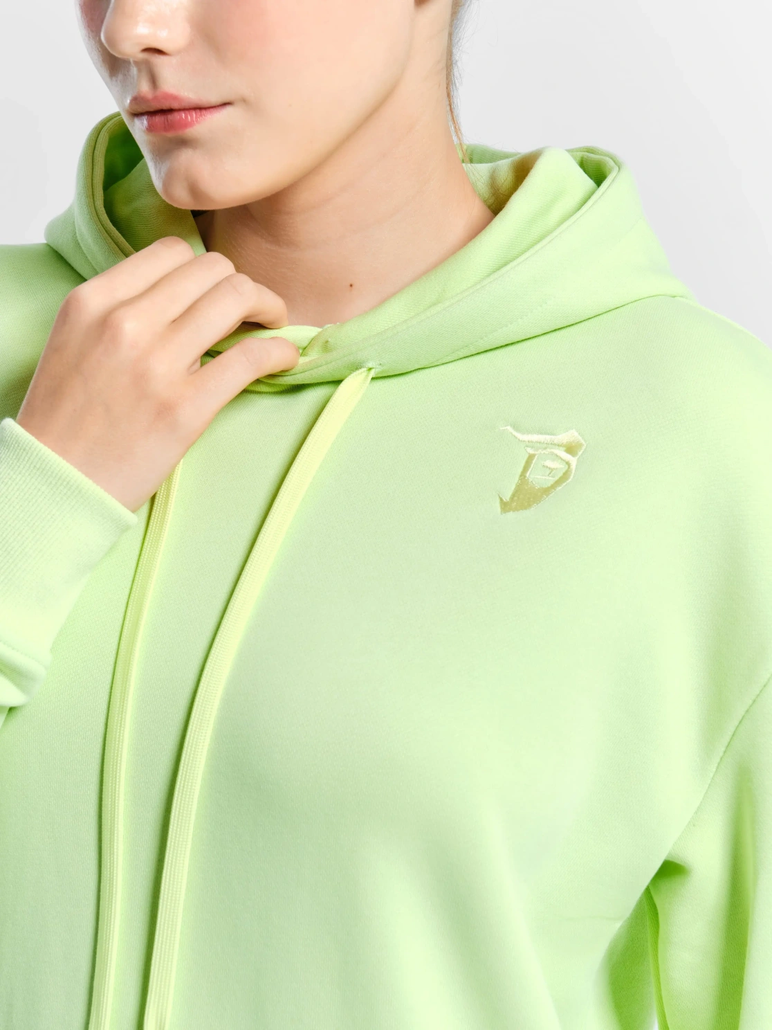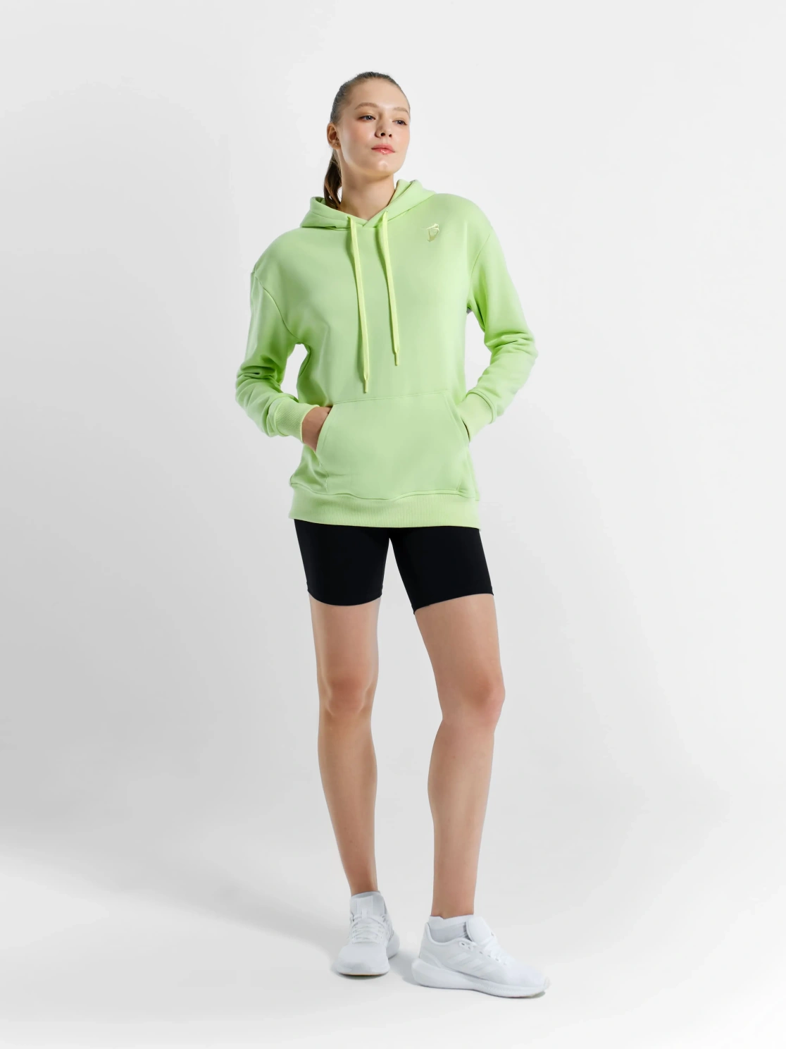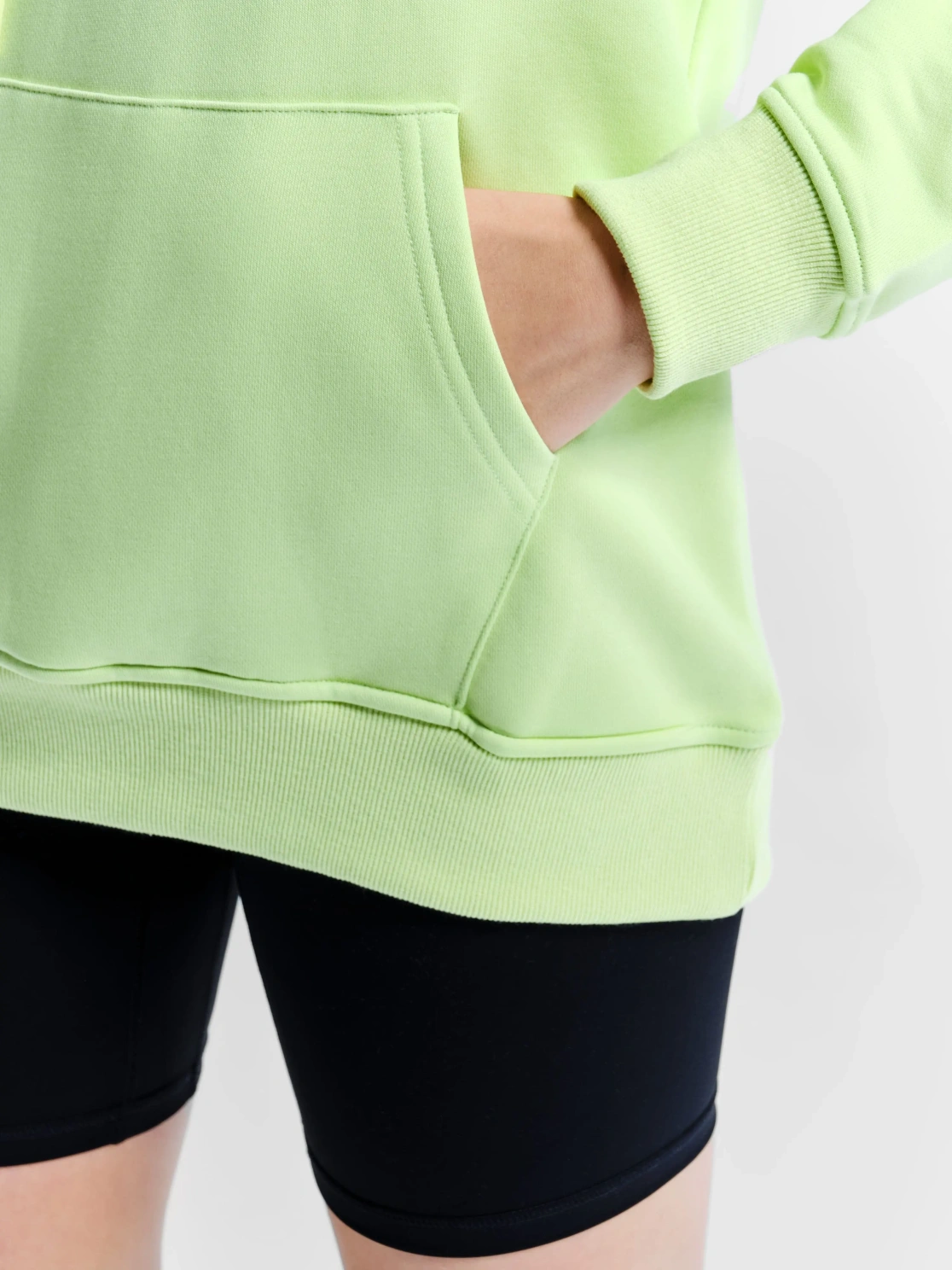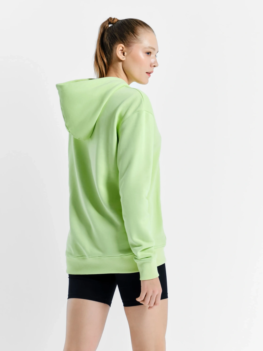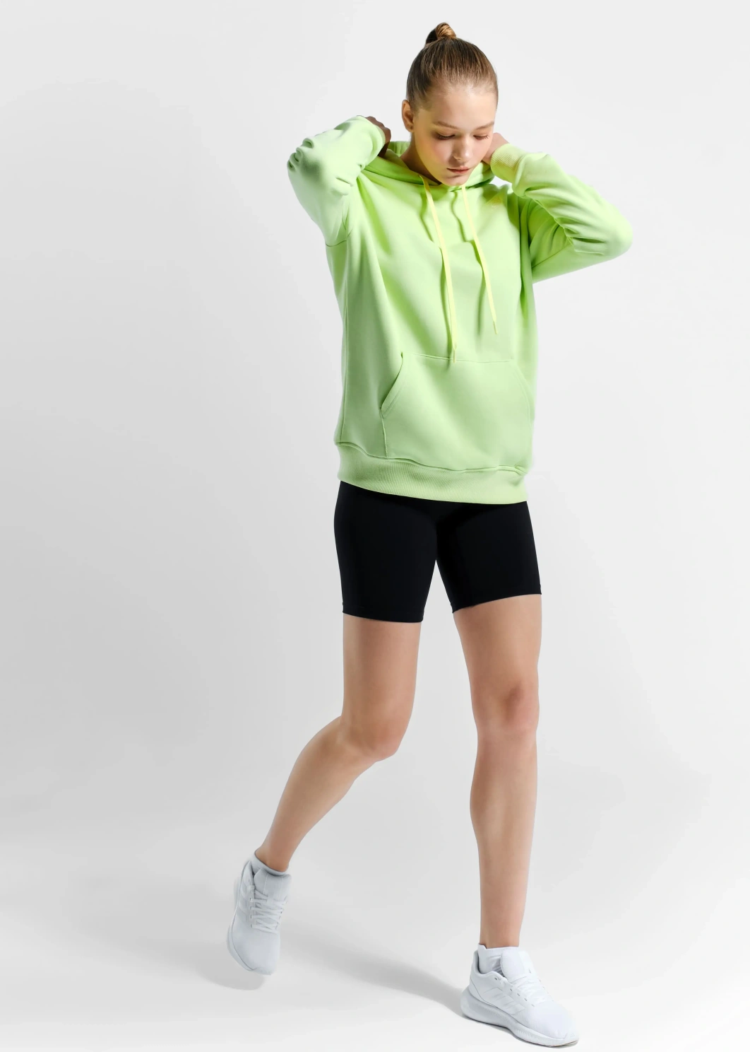 Женское худи ярких расцветок с логотипом медведя на груди в салатовом цвете. Модель с капюшоном и передним карманом кенгуру предназначена для активного отдыха или повседневной носки. Худи защищает от ветра и холода, благодаря плотной ткани. Силуэт прямой, поэтому при носке не возникает дискомфорта.