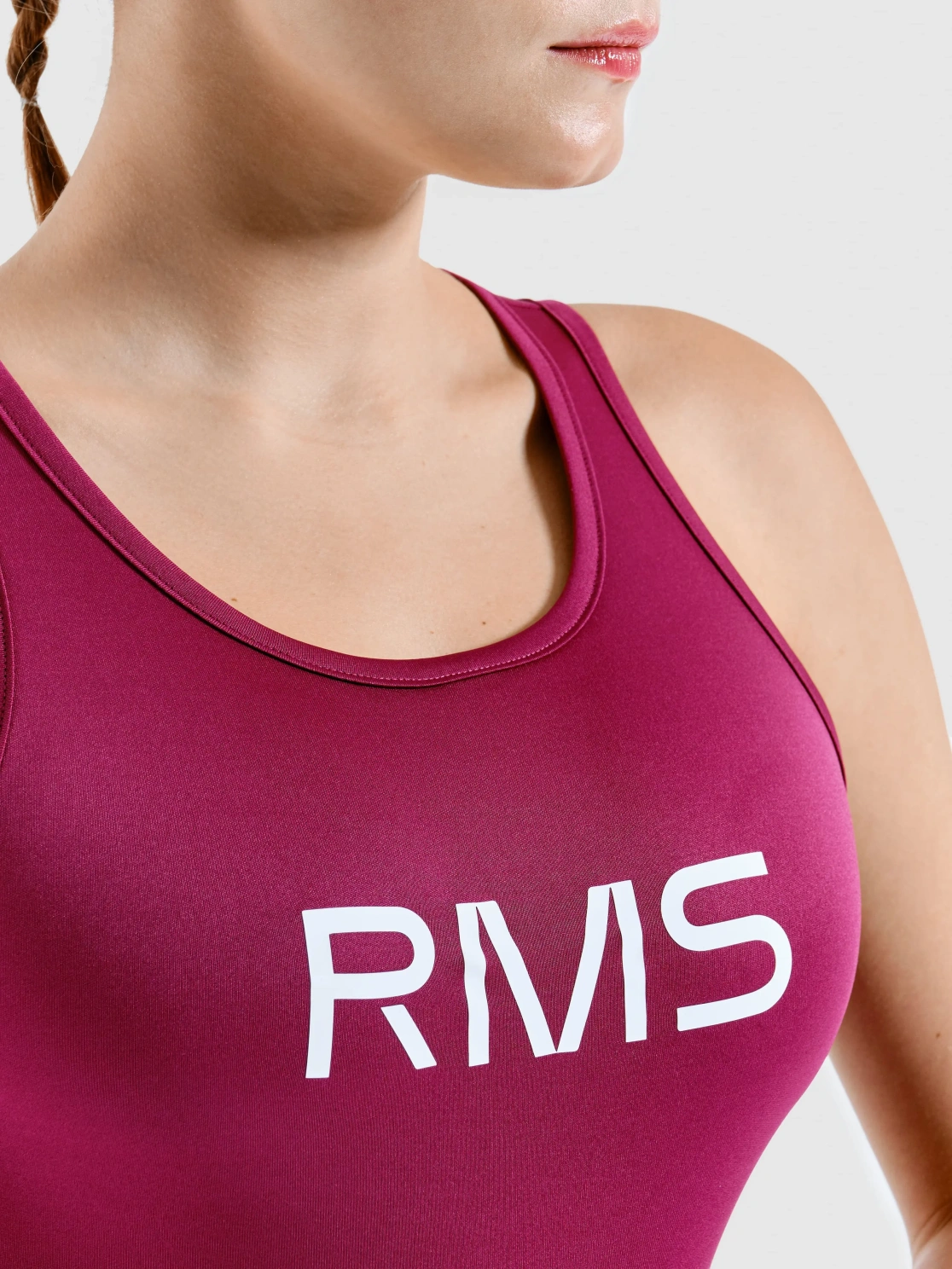 Яркий топ-майка для спортивных женщин с фирменной надписью RMS и логотипом медведя на груди. Топ выполнен в приятном винном цвете. Не стесняет движений при интенсивных тренировках и не провоцирует излишнюю потливость. Подходит для сочетания с любым спортивным низом: брюками, шортами или леггинсами.