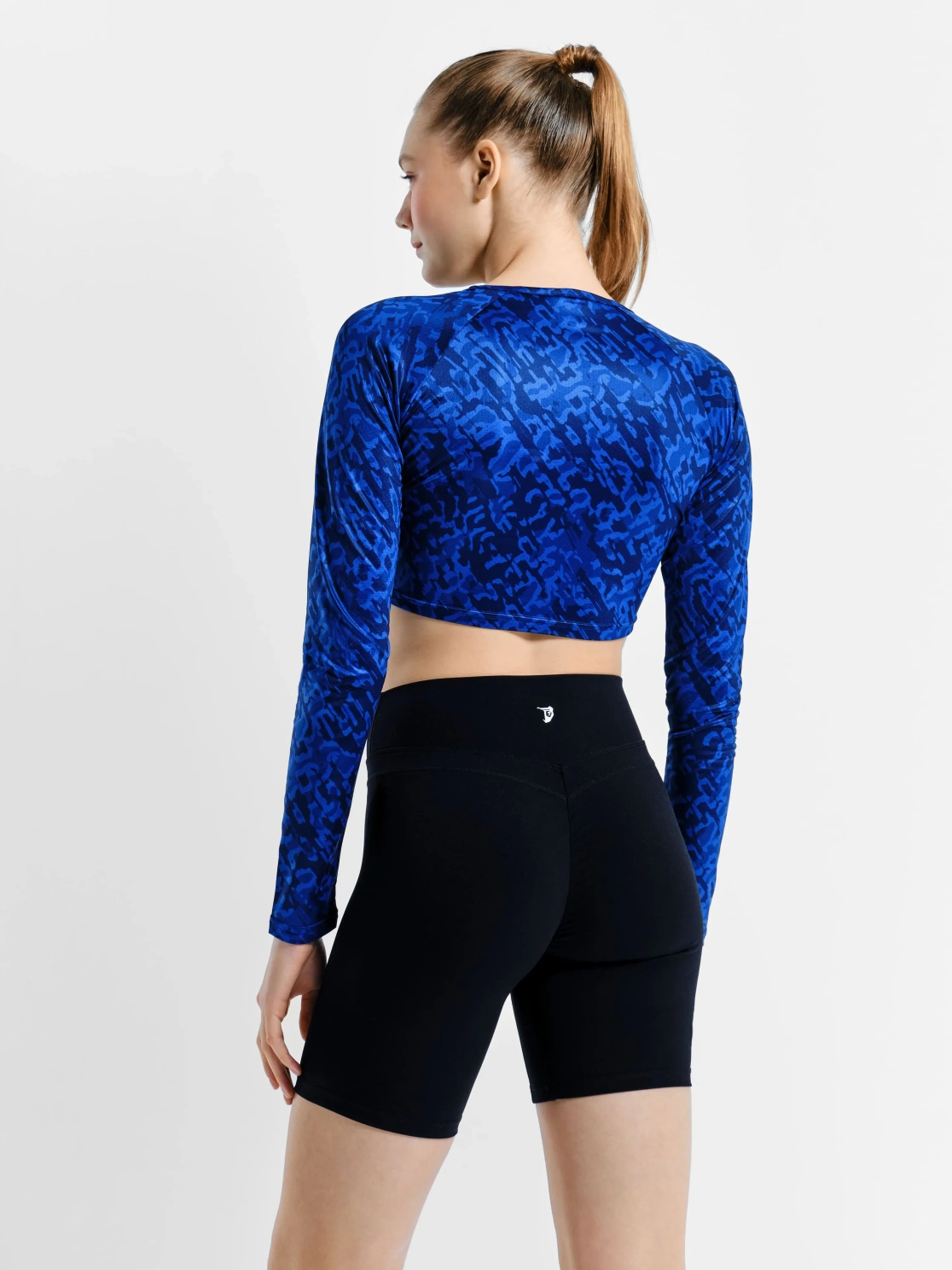 Женский кроп-топ с длинным рукавом синий с текстурой WF-C315
