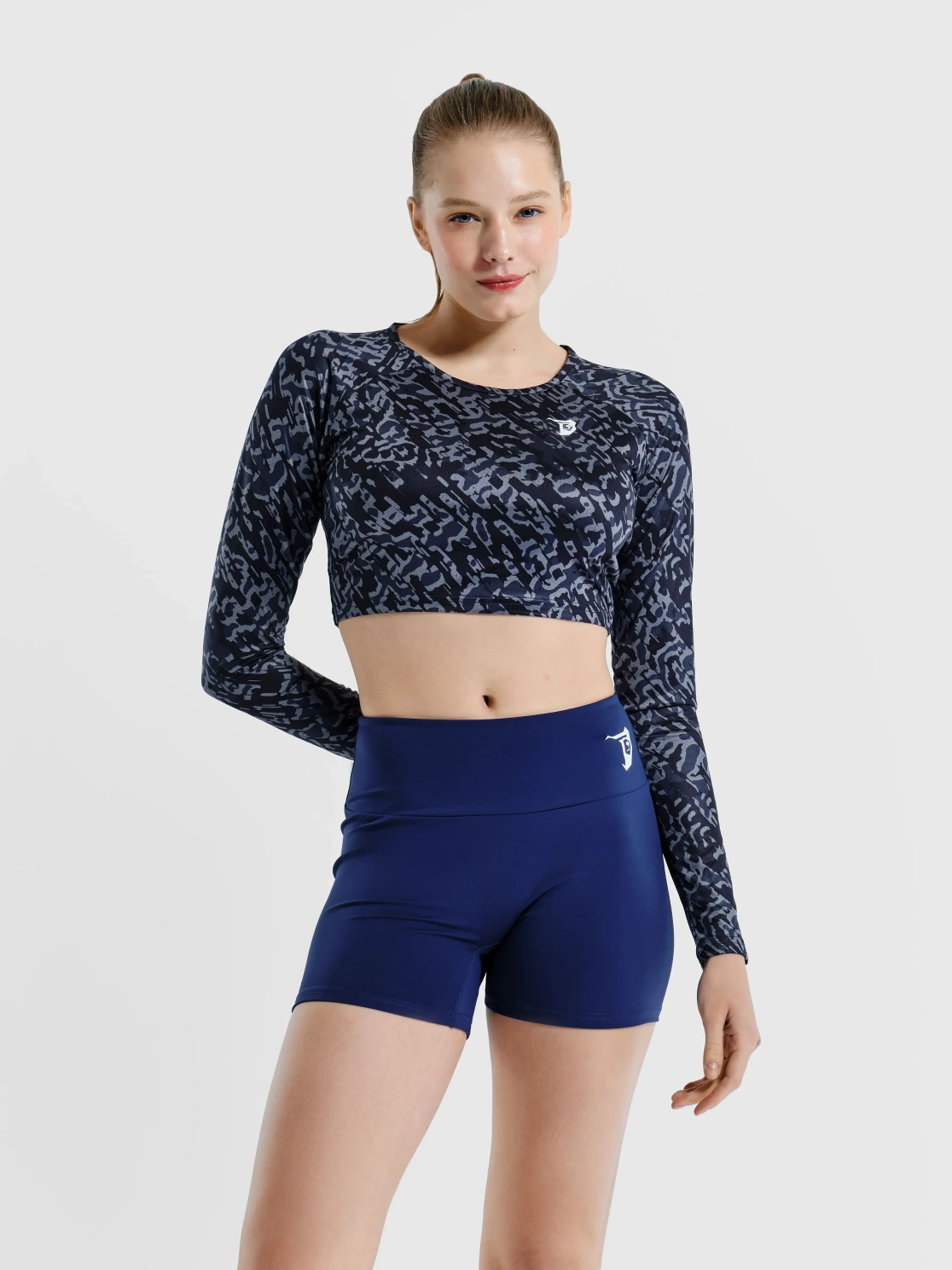 Женский кроп-топ с длинным рукавом темно-синий с текстурой WF-C315