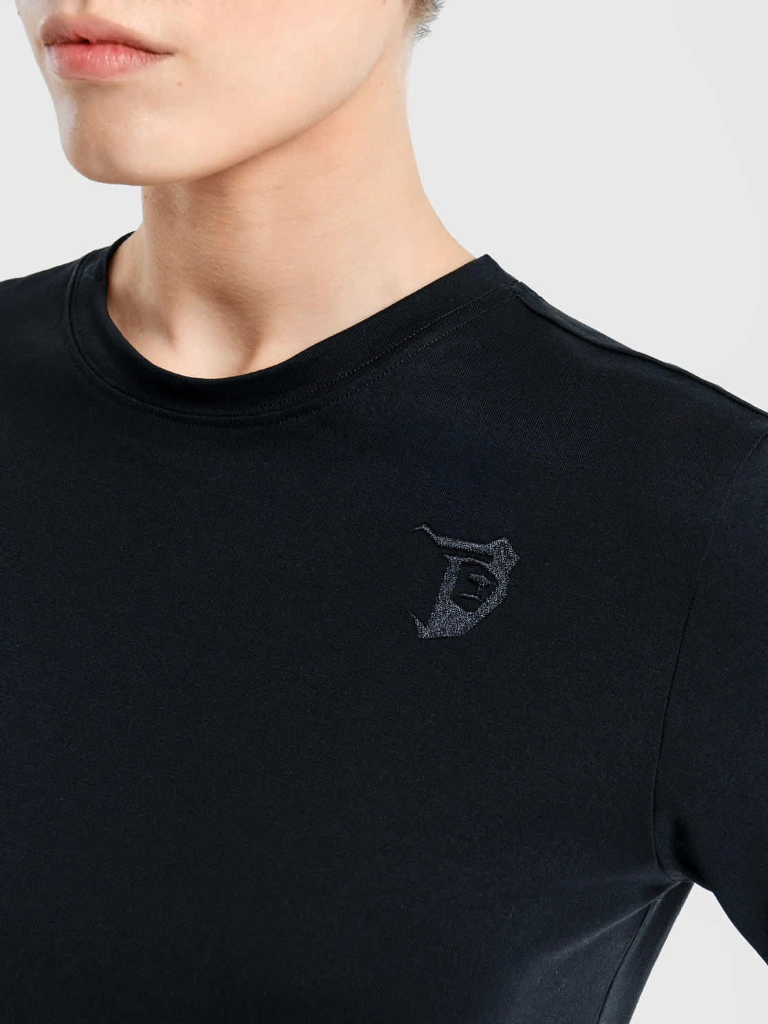 Привлекательная и стильная женская офисная футболка с коротким рукавом черного цвета - идеальное дополнение к вашему деловому гардеробу. Сочетание комфорта и элегантности делает эту модель отличным выбором для активных и стильных женщин.
